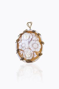 Peso gr 14 9 Cm 6x5 con cammeo inciso a motivi floreali montato su base in oro rosa 9 Kt.