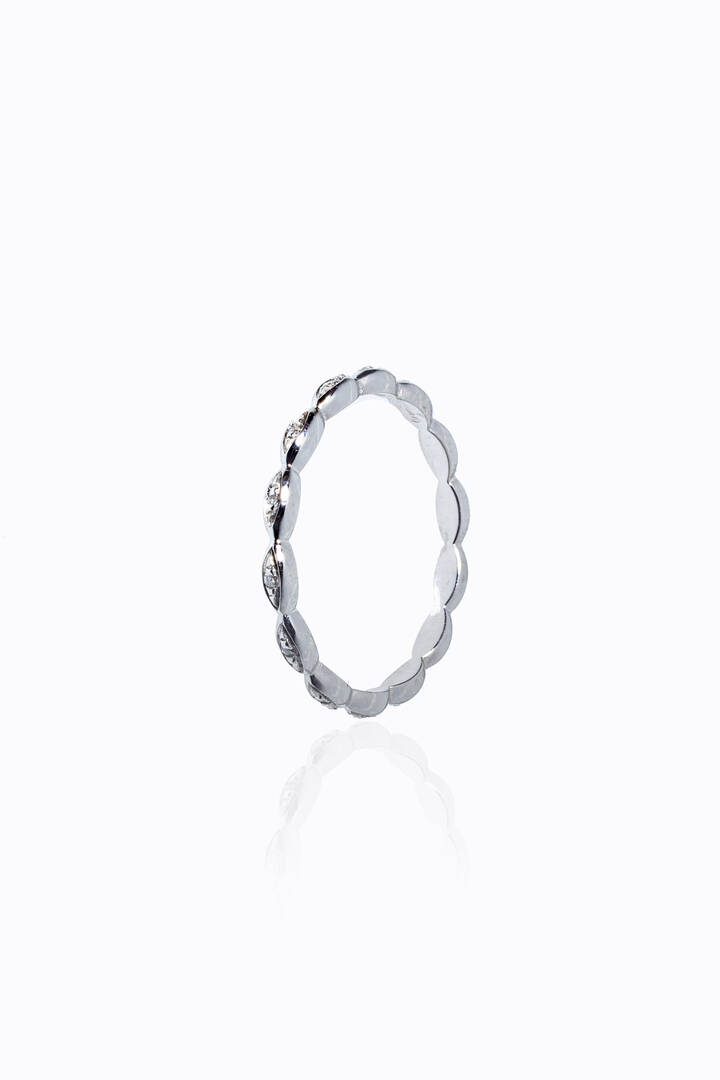 Peso gr 1 6 Misura 14 (54) in oro bianco con piccoli diamanti taglio brillante per totali ct 0 07 ca probabile colore G-H purezza IF-VVS