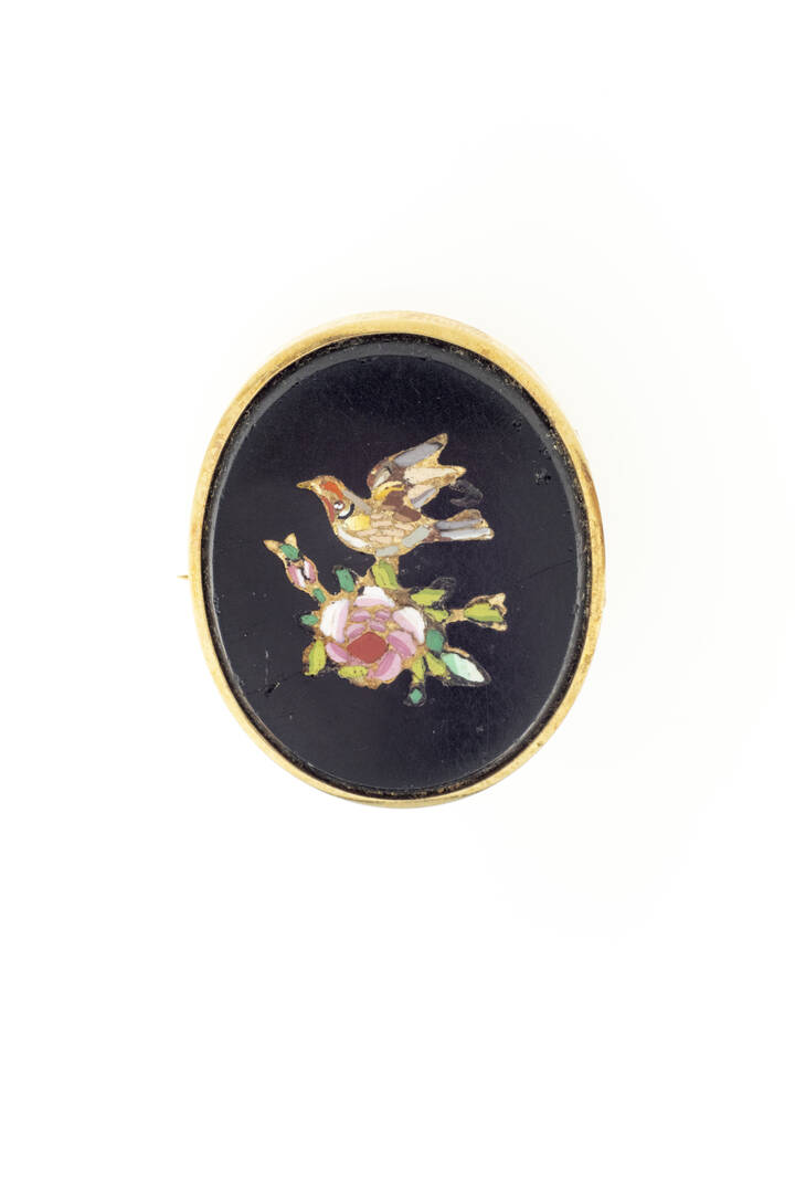 Peso gr 10 9 2 6x3 2 cm in oro giallo a bassa caratura di forma ovale con micromosaico (rotture)
