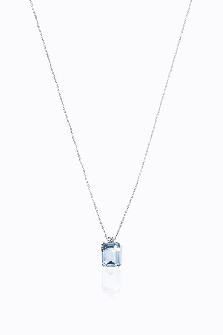 Peso gr 2 5 in oro bianco con acquamarina taglio ottagonale a gradini di ct 2 09 ca sormontata da diamante taglio brillante di ct 0 03