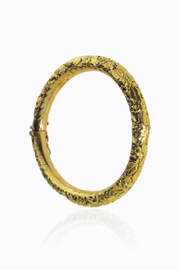 Peso gr 21 2 in oro giallo anni '920. lavorato a canna vuota con decori floreali. [..]