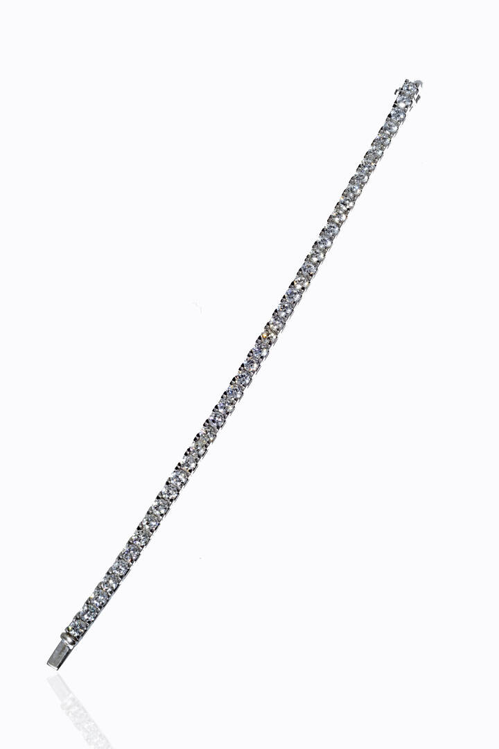 Peso gr 22 4 Lunghezza cm 19 5 in oro bianco modello tennis con diamanti taglio brillante per totali ct 12 36; probabile colore G-H purezza IF-VVS
