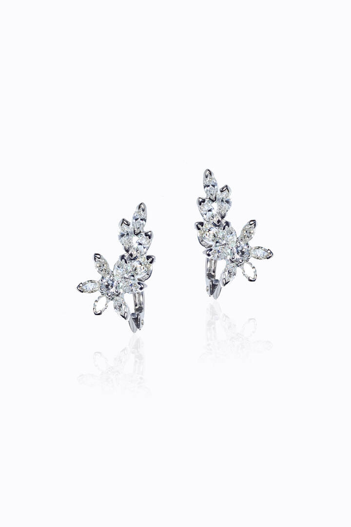 Peso gr 3 9 in oro bianco a forma di foglie in diamanti taglio brillante per totali ct 0 17 ca probabile colore G-H purezza IF-VVS