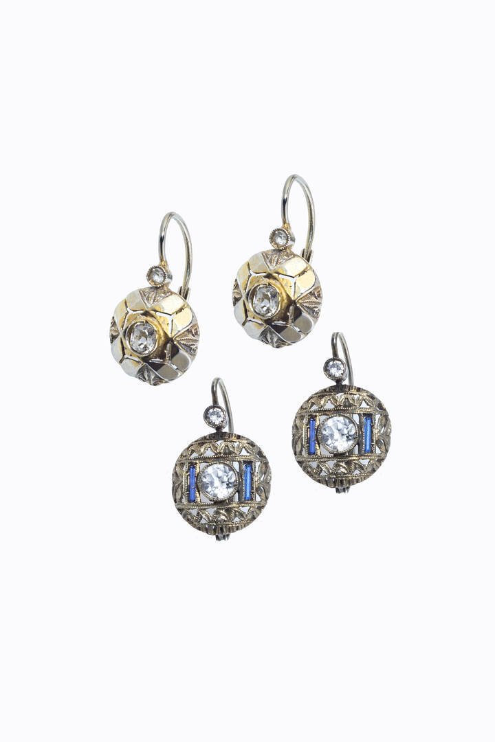 Peso gr 3 9 in oro bianco inizi XX secolo a monachella con zaffiri baguette e gemme sintetiche