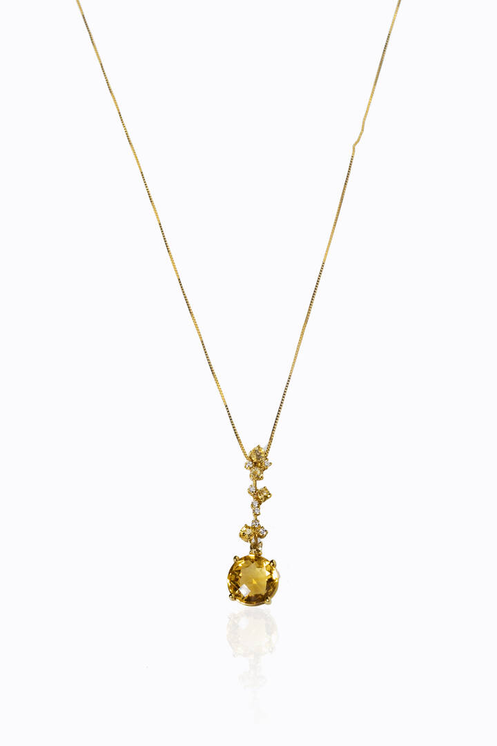 Peso gr 4 3 Catena con ciondolo in oro giallo firmato Miluna con quarzi citrini sfaccettati e piccoli diamanti taglio brillante per totali ct 0 07 ca