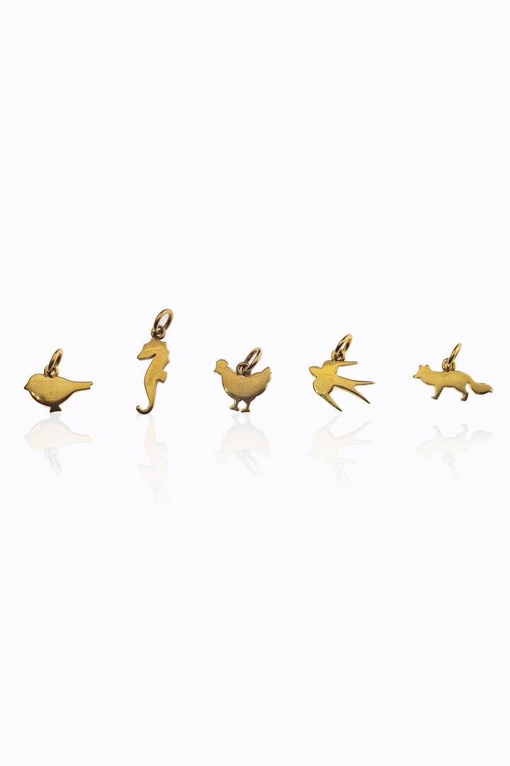 Peso gr 4 9 Lotto di cinque charms Pomellato linea Dodo in oro giallo raffiguranti: una volpe un pettirosso un cavalluccio marino una rondine una gallina