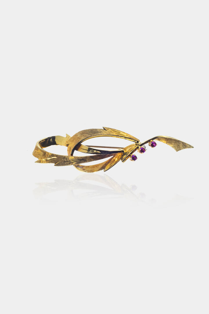 Peso gr 5 3 cm 6 5x2 in oro giallo a forma di ramo fiorito con tre rubini sint [..]