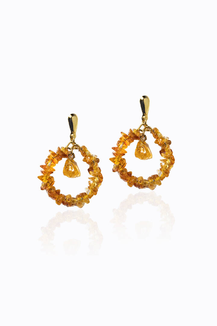 Peso gr 5 5 in oro giallo a forma di cerchi con pepite di ambra