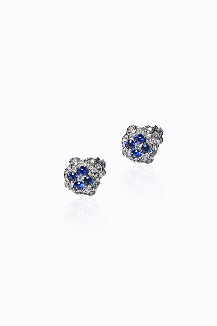 Peso gr 5 7 in oro bianco di forma quadrata con otto zaffiri taglio rotondo per totali ct 0 71 ca e diamanti taglio brillante per totali ct 0 27ca probabile colore G-H purezza IF-VVS