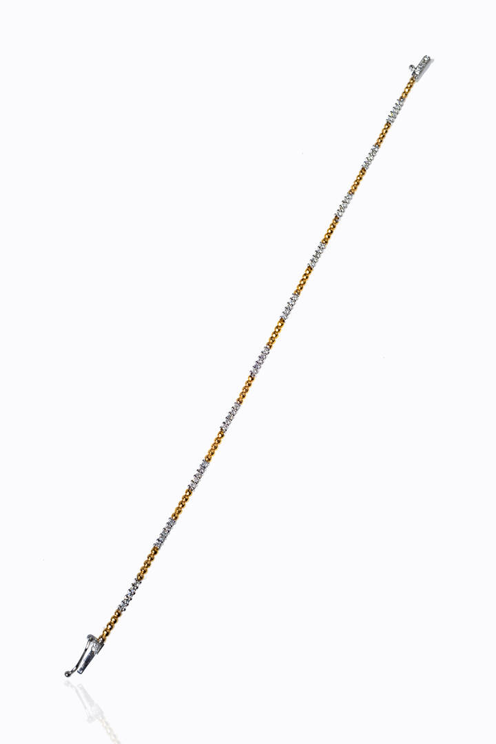 Peso gr 5 9 Lunghezza cm 18 in oro rosa e bianco composto da segmenti rigidi in diamanti taglio brillante per totali ct 0 56 ca probabile colore G-H purezza IF-VVS alternati a piccole sfere