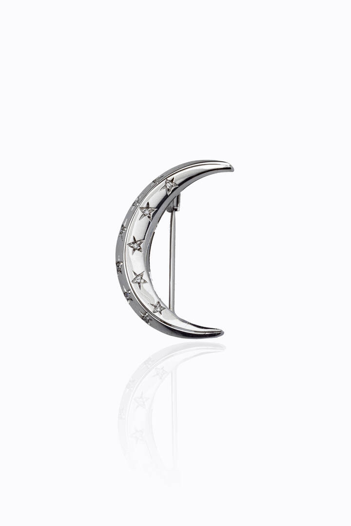 Peso gr 6 2 H cm 3 in oro bianco a forma di mezza luna impreziosita da stelle in diamanti taglio 8/8 per totali ct 0 10 ca