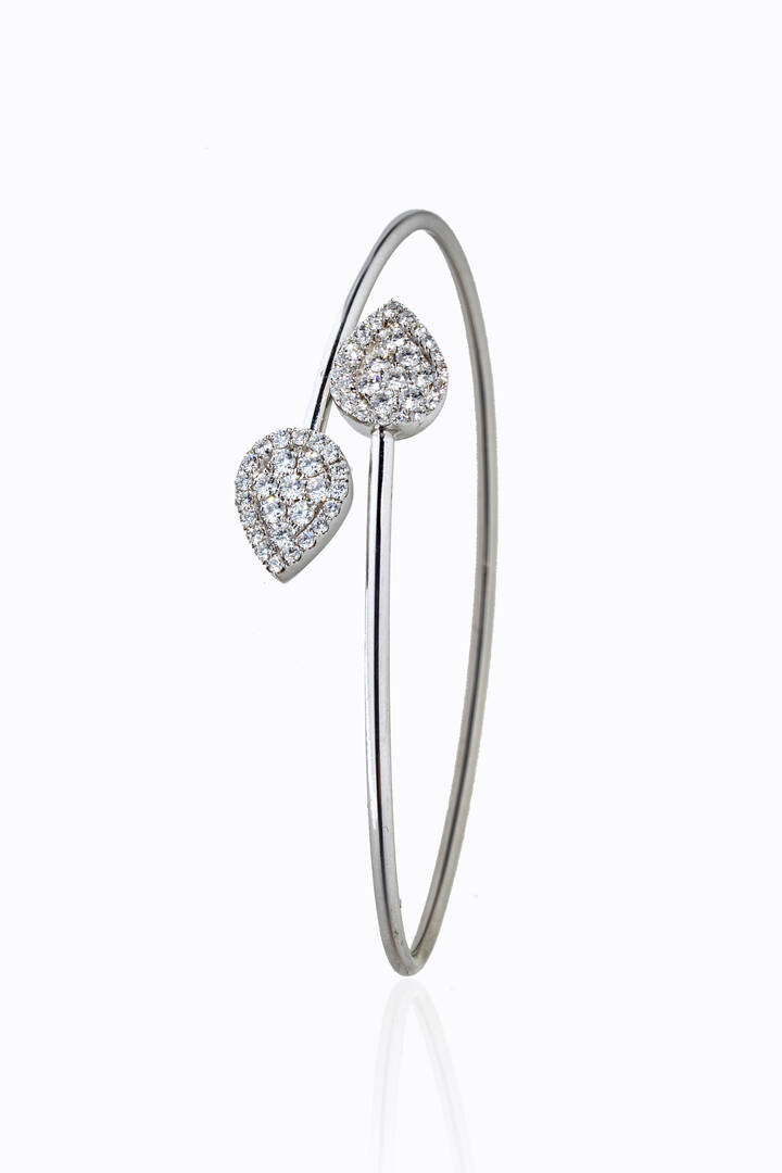 Peso gr 6 4 rigido in oro bianco con terminali a forma di foglie in diamanti taglio [..]