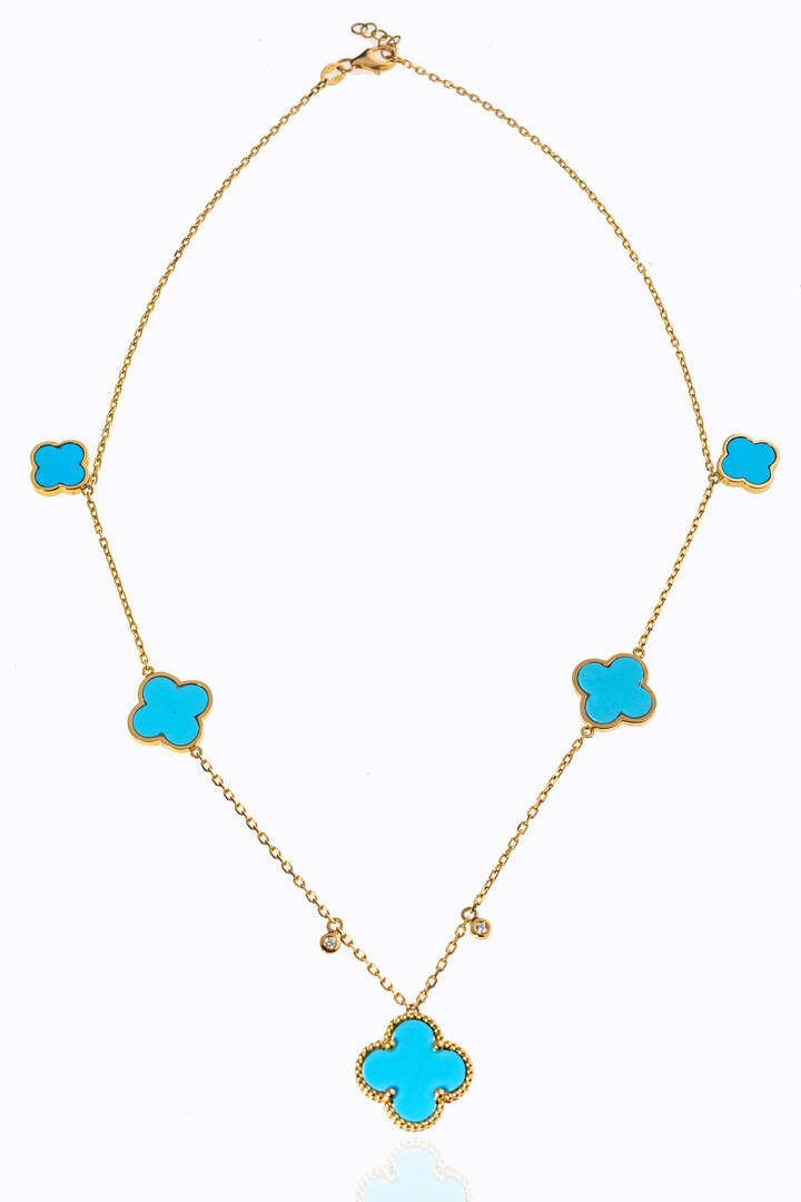 Peso gr 8 8 in oro rosa con ciondoli a forma di quadrifogli in turchesi e due diamanti [..]