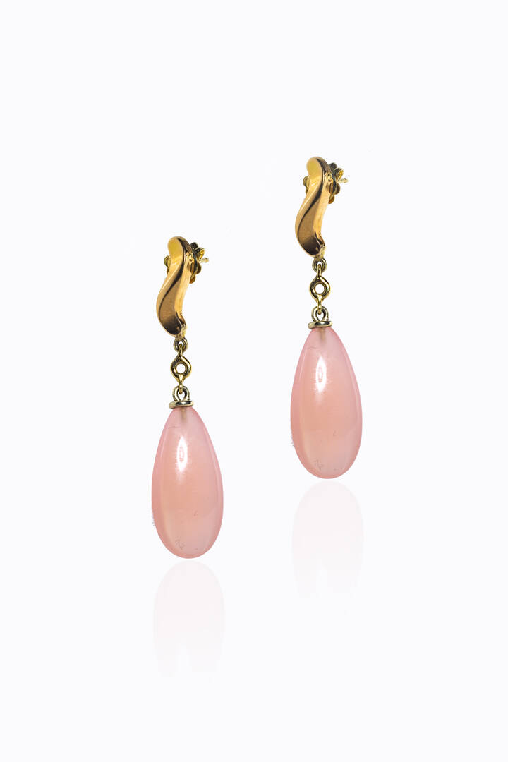 Peso gr 9 6 pendenti in oro giallo con due gocce di quarzo rosa cabochon