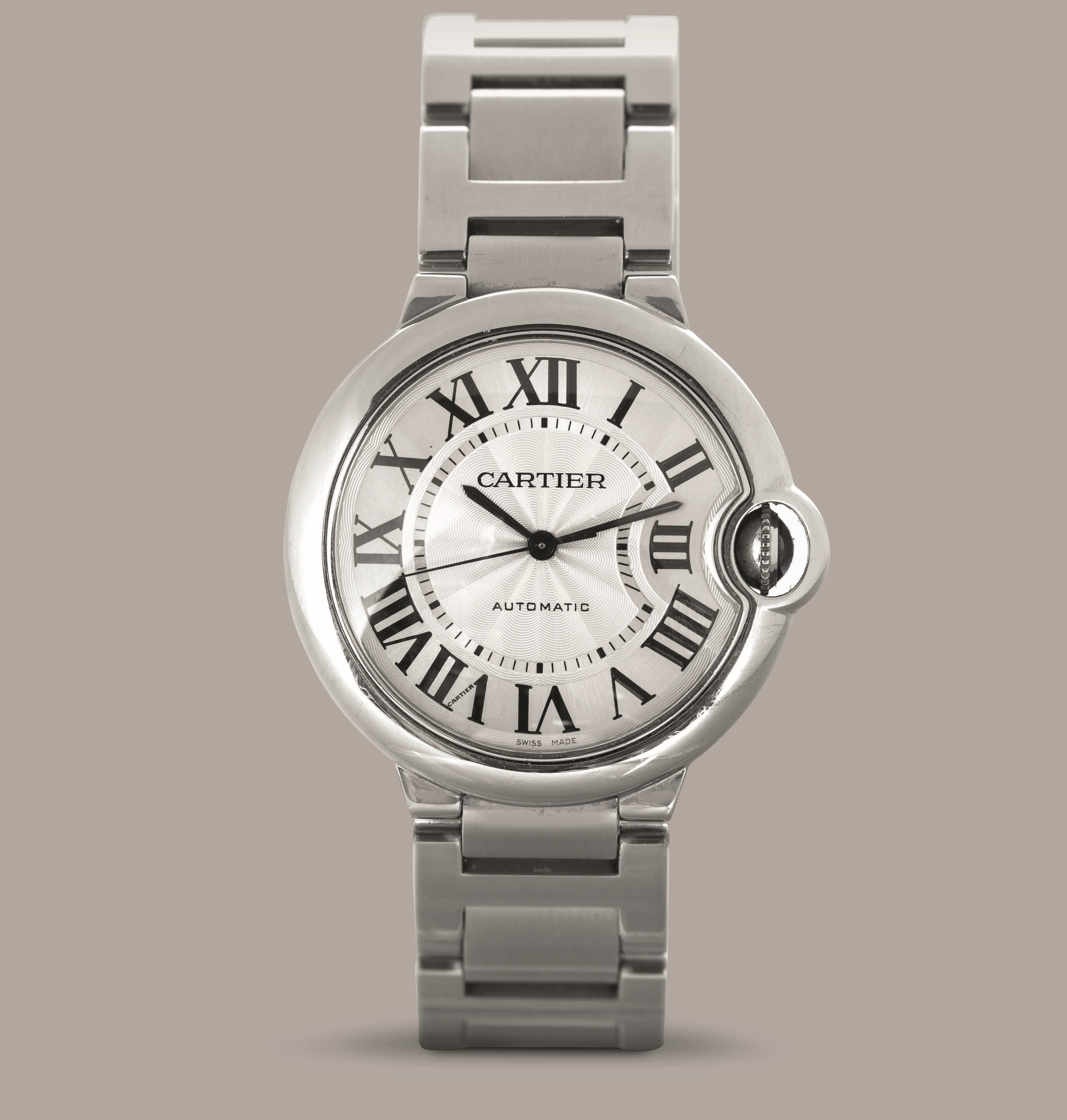 CARTIER - Ballon Bleu in acciaio con quadrante Argentè con numeri Romani, movimento [..]