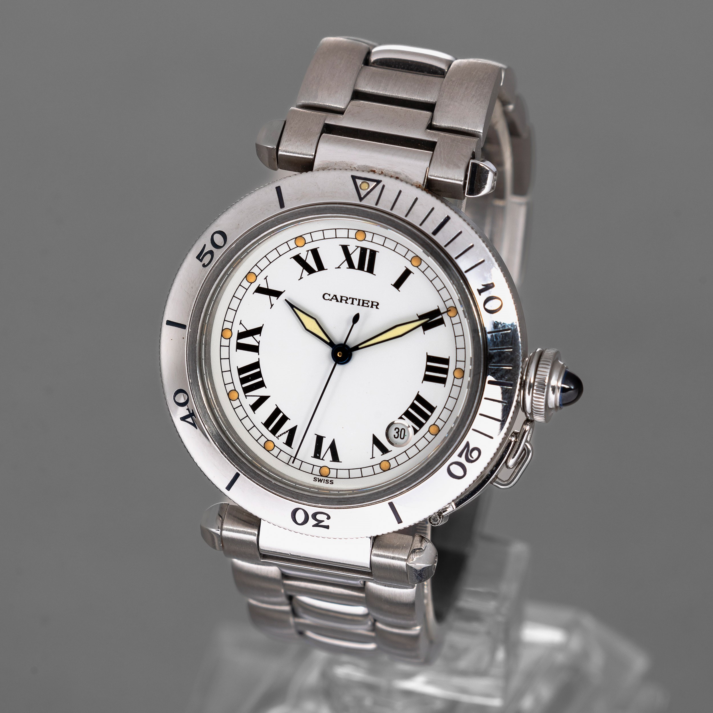 CARTIER - Pasha, in acciaio, automatico, misura grande, quadrante bianco con numeri [..]