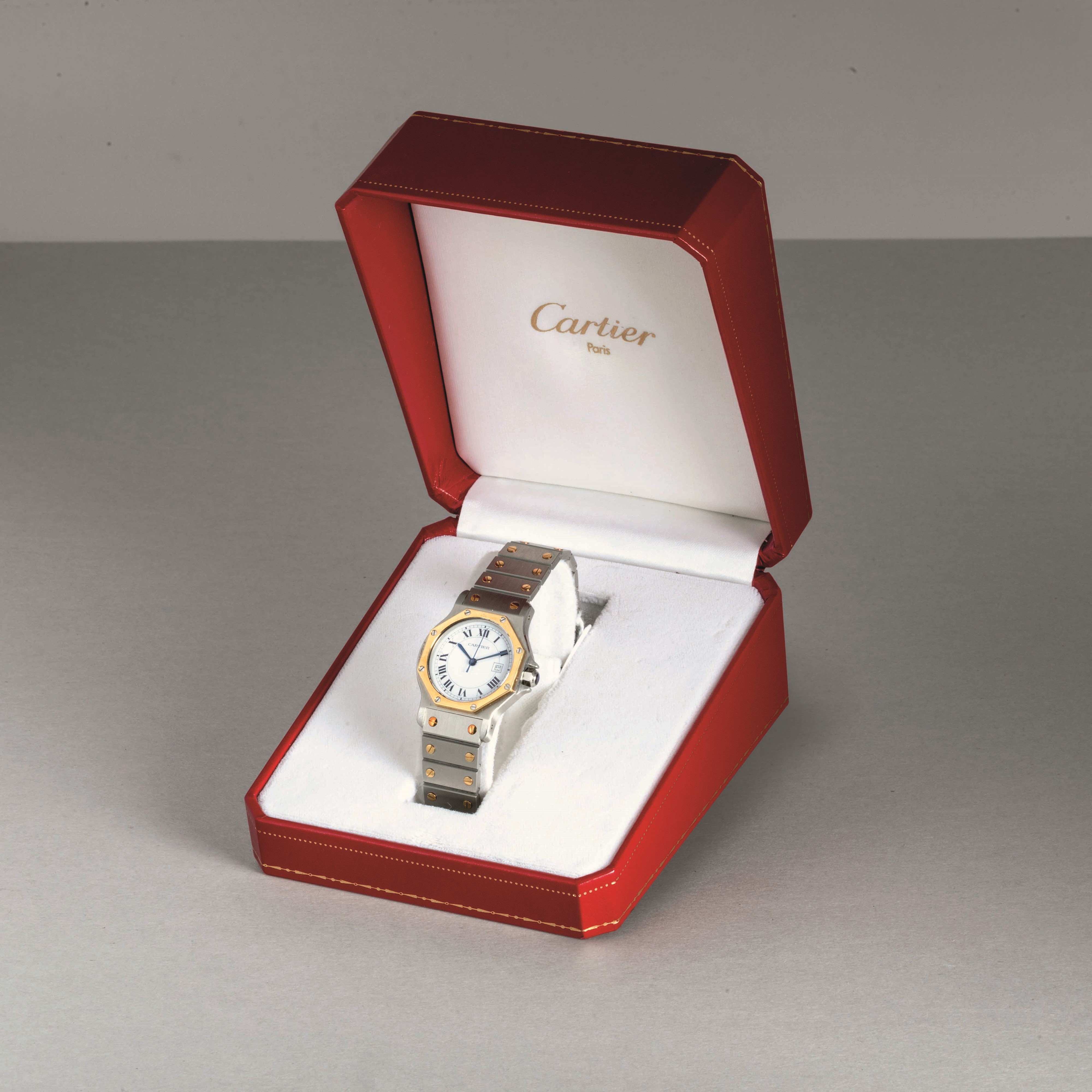 CARTIER - Santos Octagon acciaio e oro automatico, quadrante bianco con numeri Romani [..]
