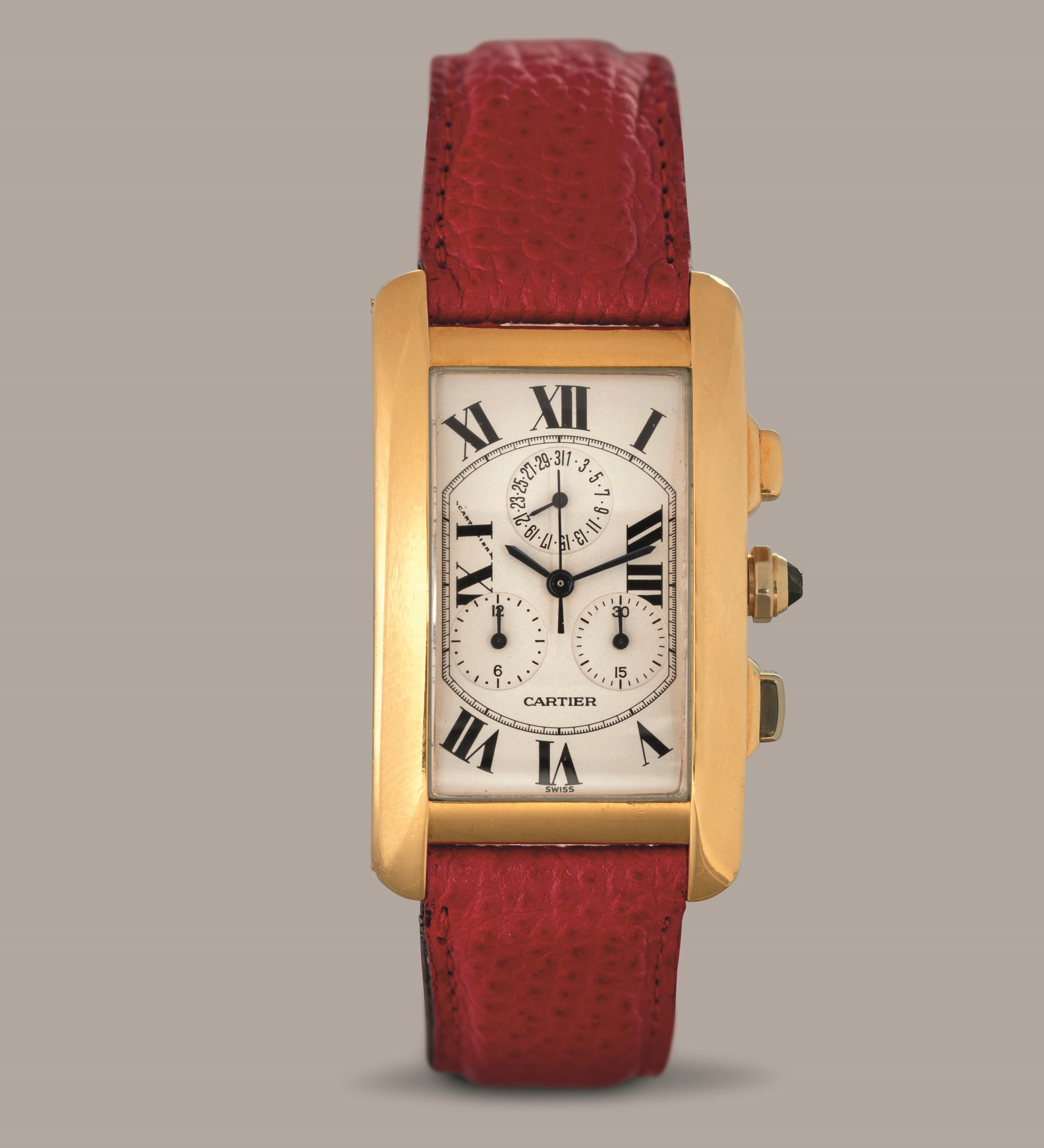 CARTIER - Tank Americaine in oro giallo 18k tre contatori, quadrante bianco con [..]