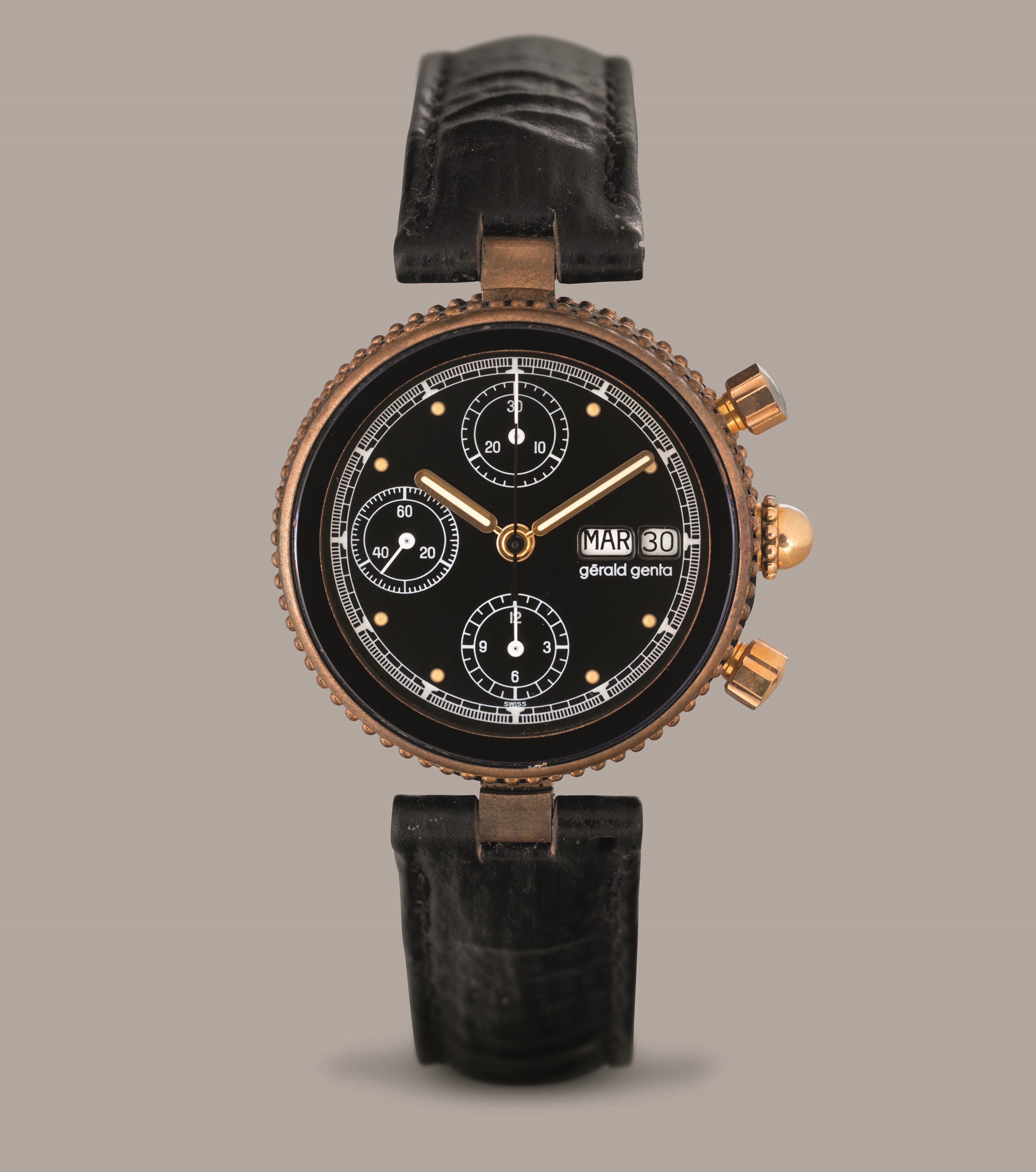 GERALD GENTA - Gefica chrono in Bronzo, quadrante nero tre contatori con indicazione [..]