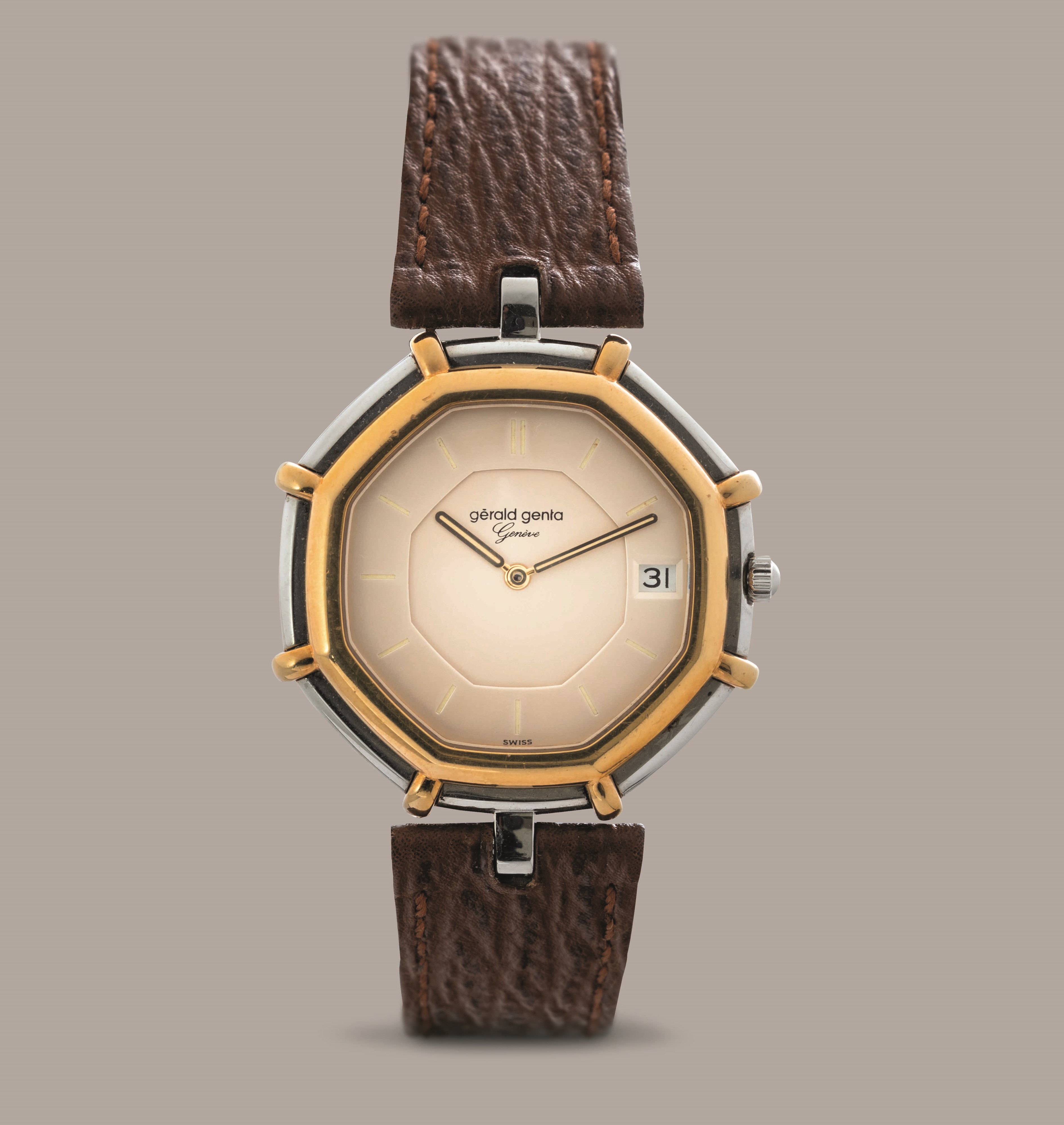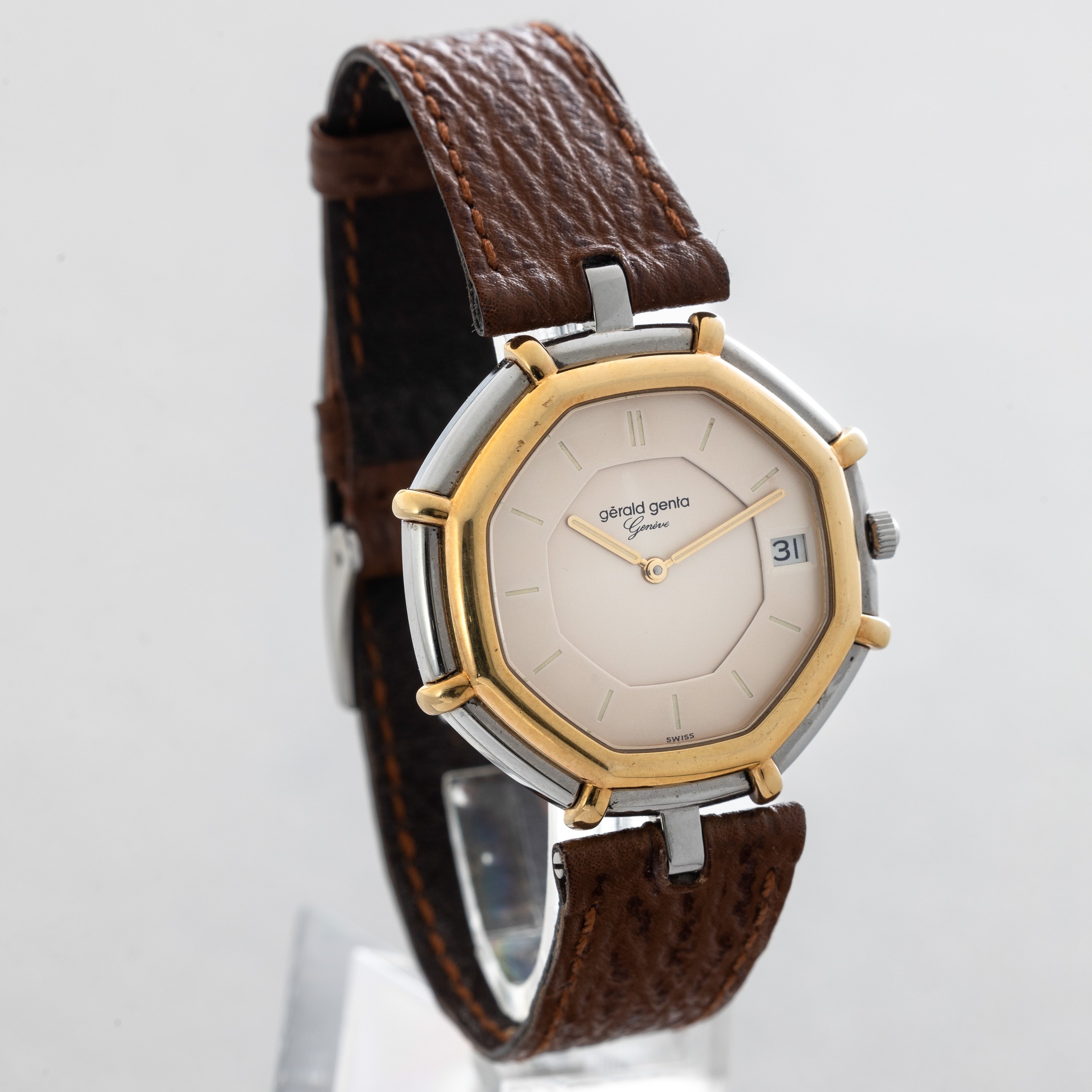 GERALD GENTA - Orologio solo tempo con datario al quarzo, acciaio e oro, cassa ottagonale [..]