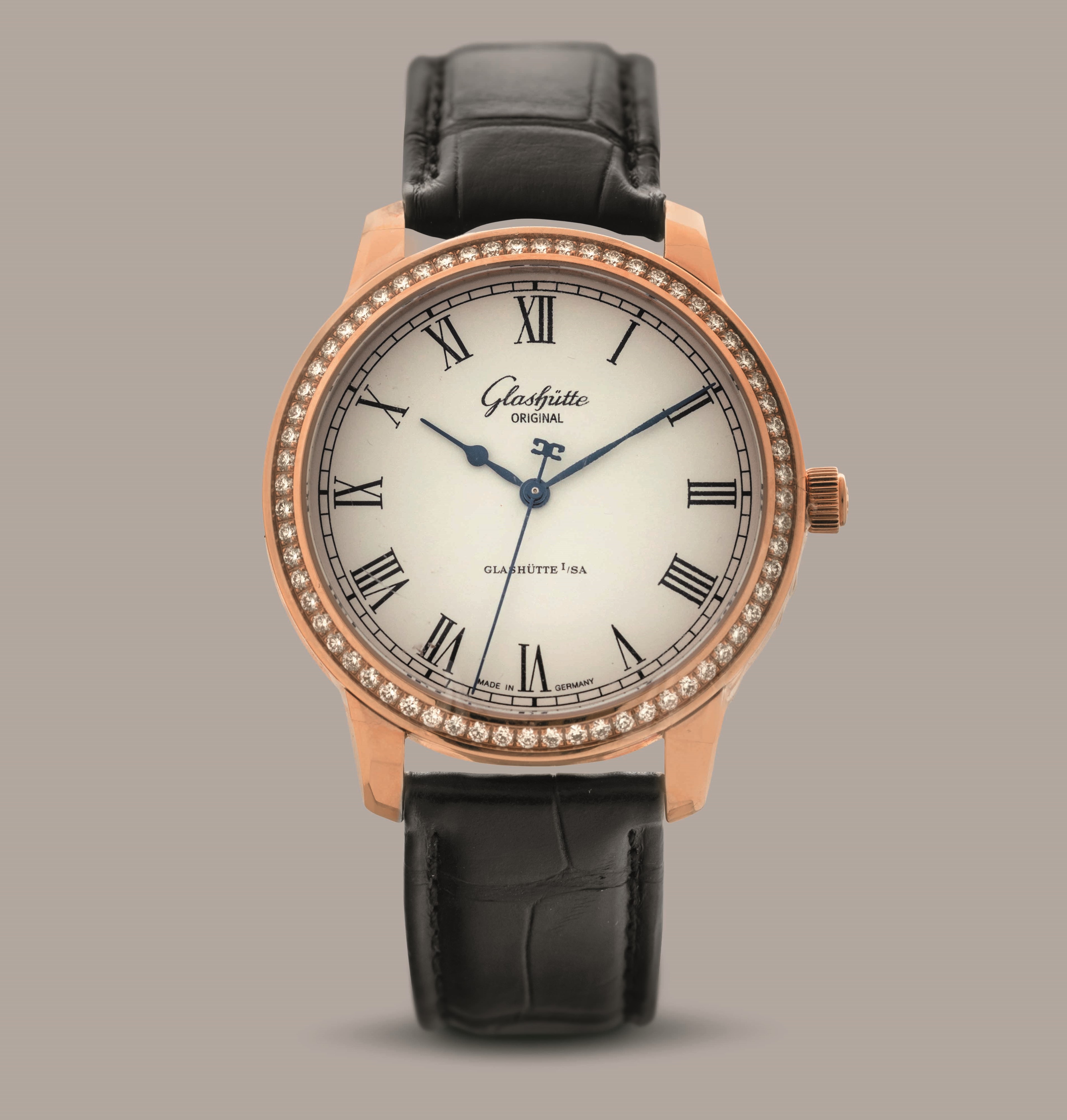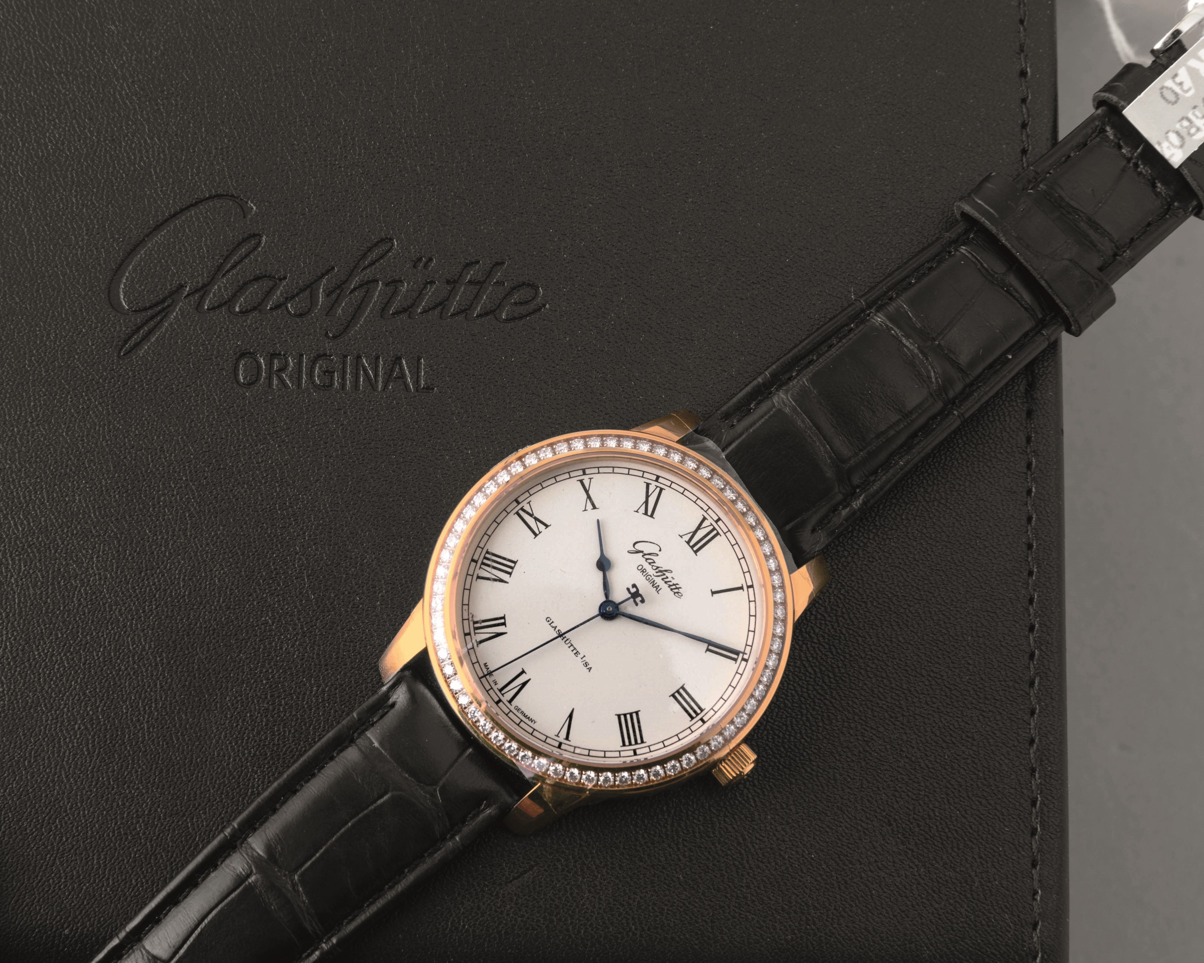 GLASHUTTE - Senator in oro rosa 18k e brillanti, quadrante Argentè con numeri Romani, [..]