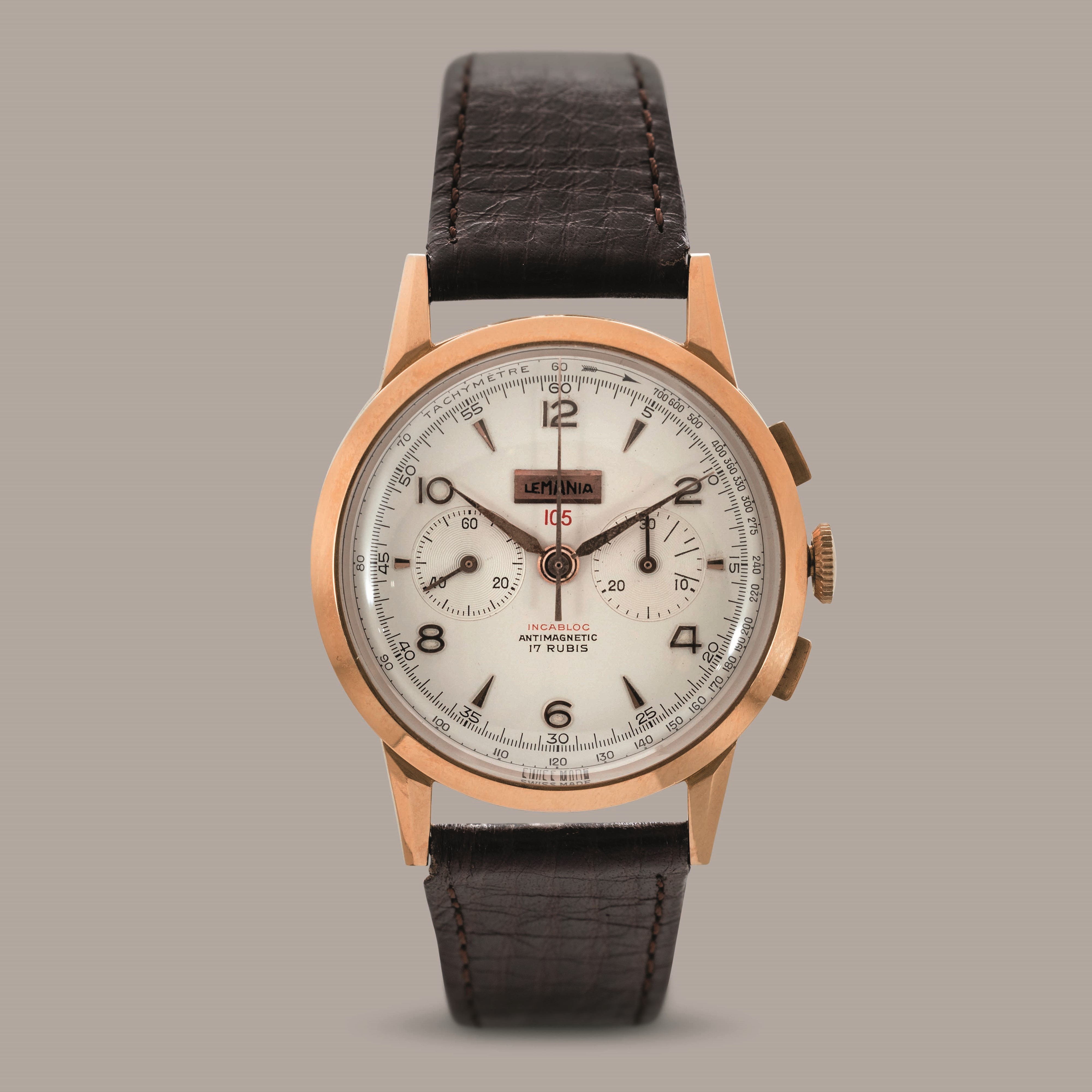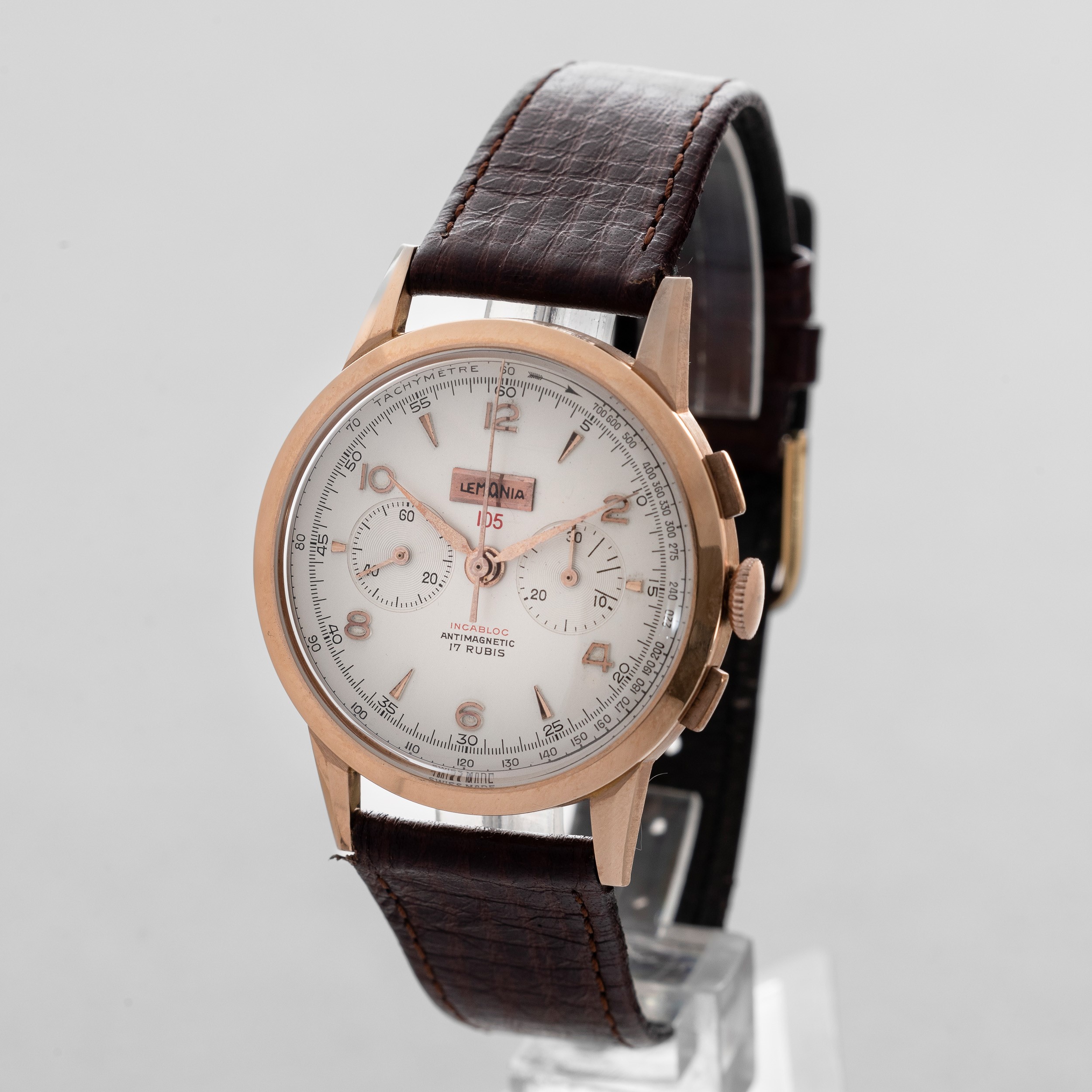 LEMANIA - Cronografo due contatori in oro rosa 18k, tasti quadri, quadrante Argentè [..]