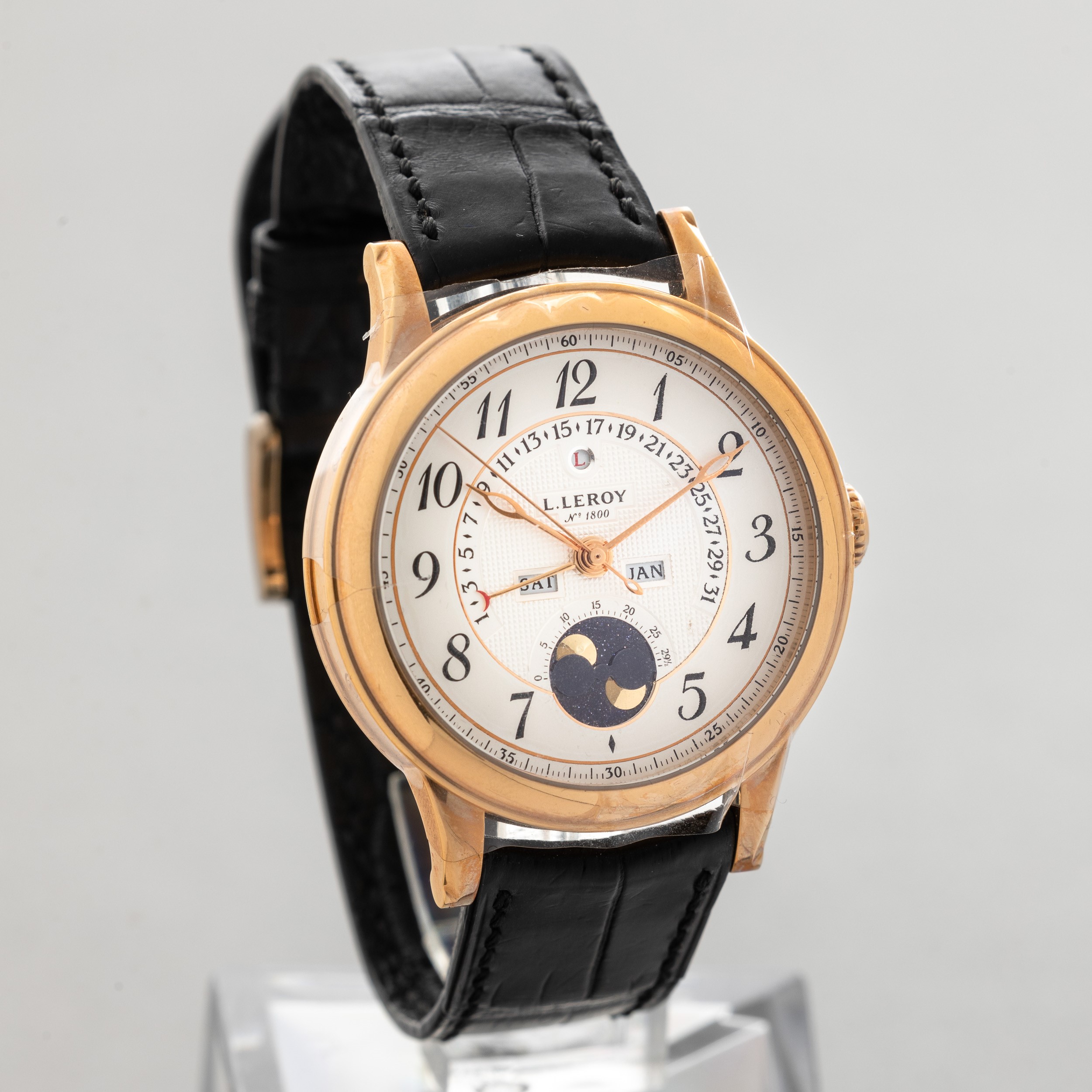 LEROY - Quantieme Perpetuel in oro rosa 18k, quadrante guilloché con numeri Arabi, [..]