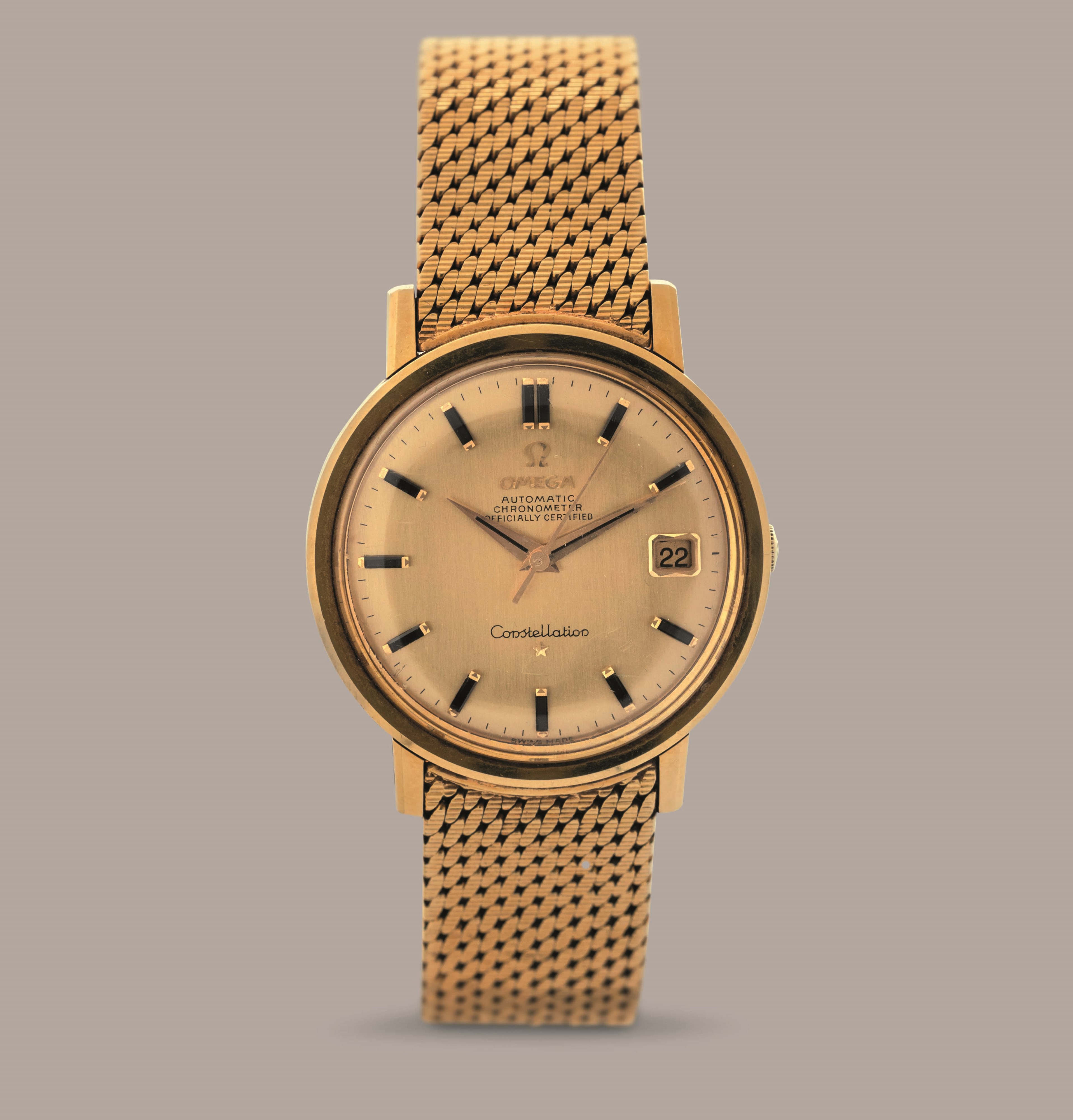 OMEGA - Costellation in oro giallo 18k, quadrante dorato con indici in Onice e datario, [..]