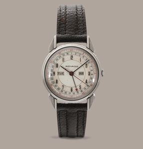 MOVADO - Calendograph ref 14823, in acciaio con anse Corne de Vache, quadrante Argentè [..]