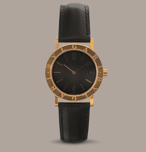 BULGARI - Bulgari in oro giallo 18k, quadrante nero con indici e numeri Arabi applicati, [..]