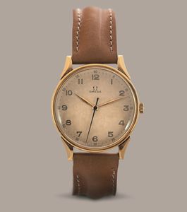 OMEGA - Orologio in oro 14k con anse riportate, quadrante champagne fanè con cifre [..]