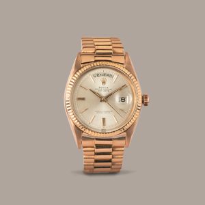 ROLEX - Daydate 1803 in oro Rosa 18k Step Dial argentè con indici applicati, ghiera [..]