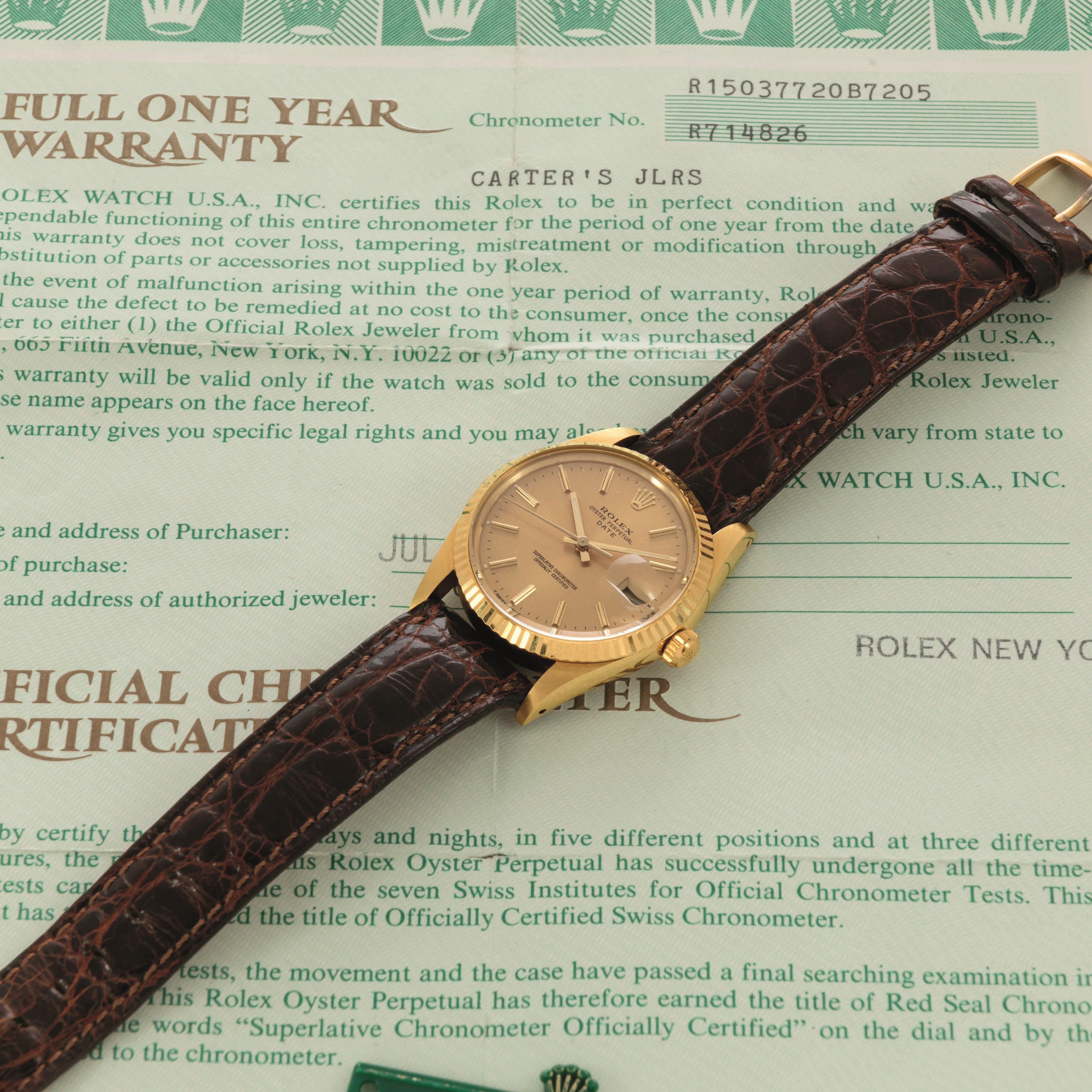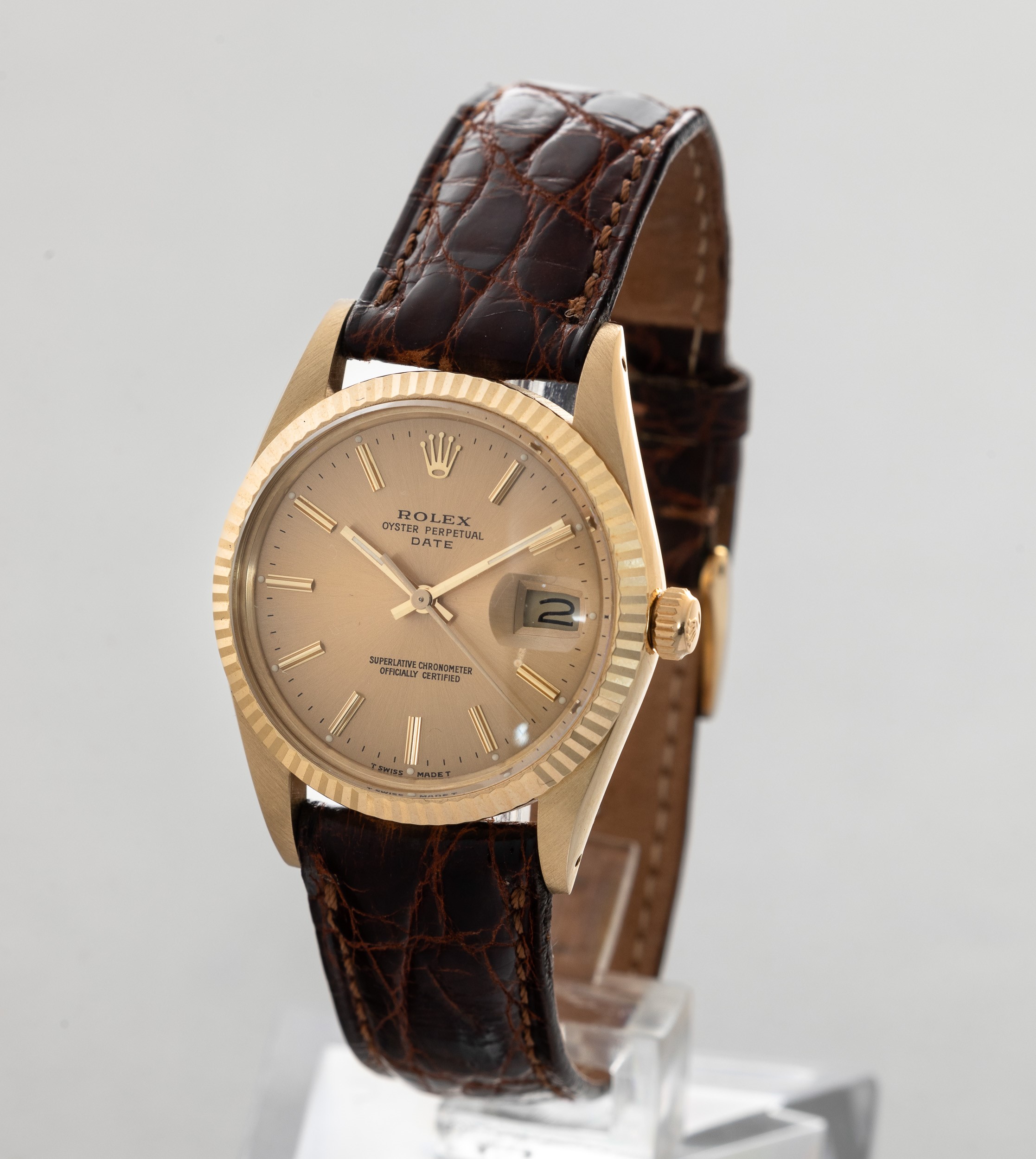 ROLEX - Date ref 15037 in oro giallo 18k, quadrante champagne con indici a bastone, [..]