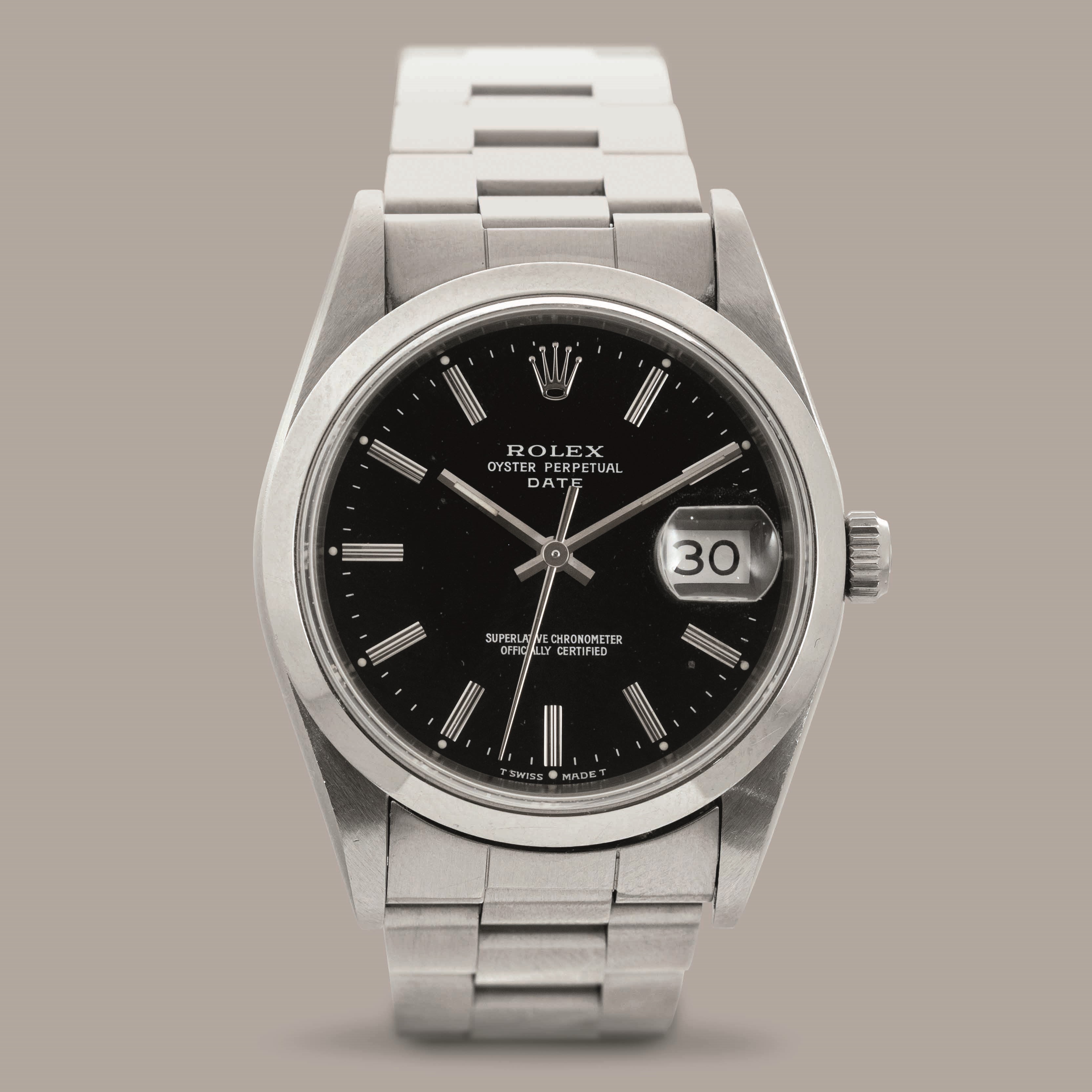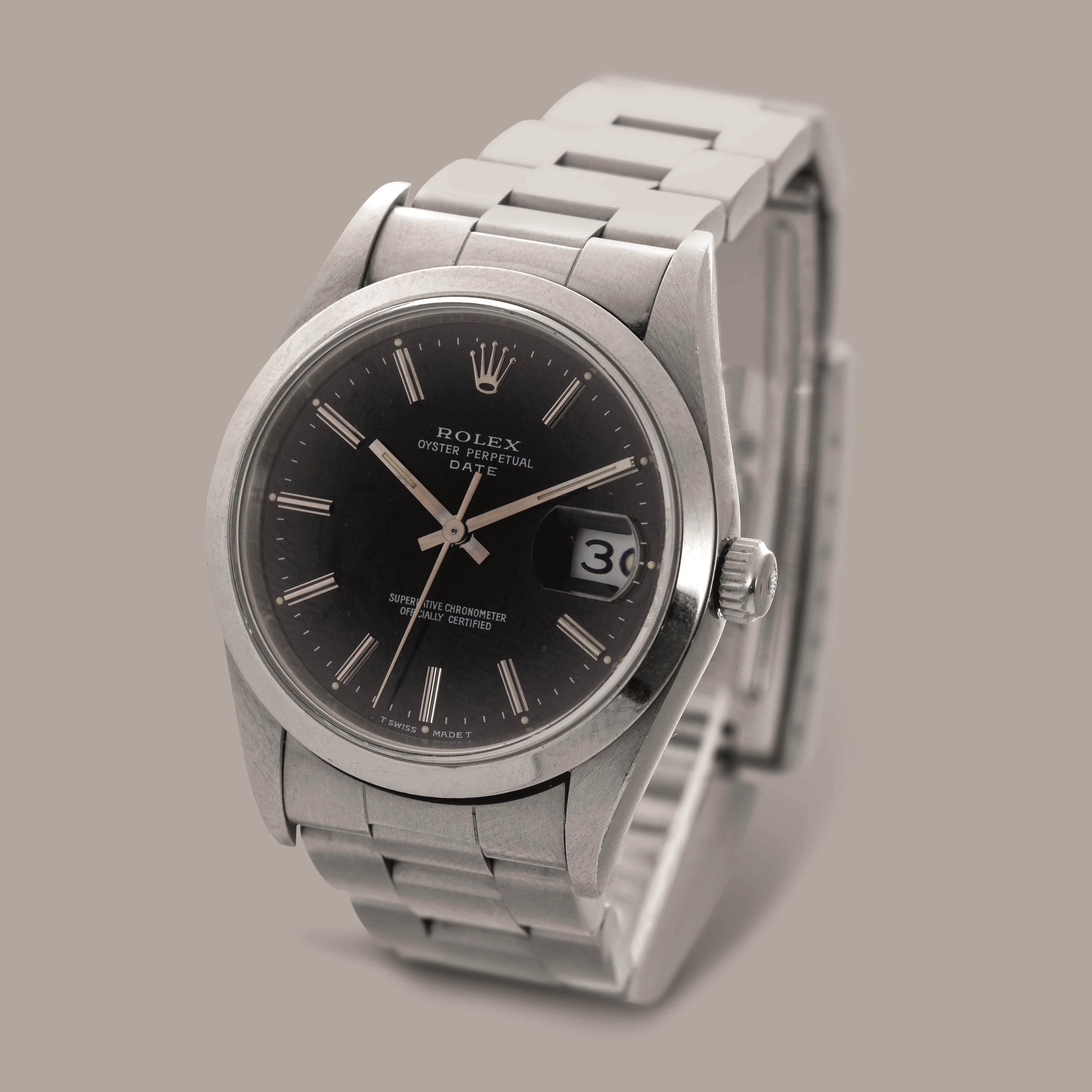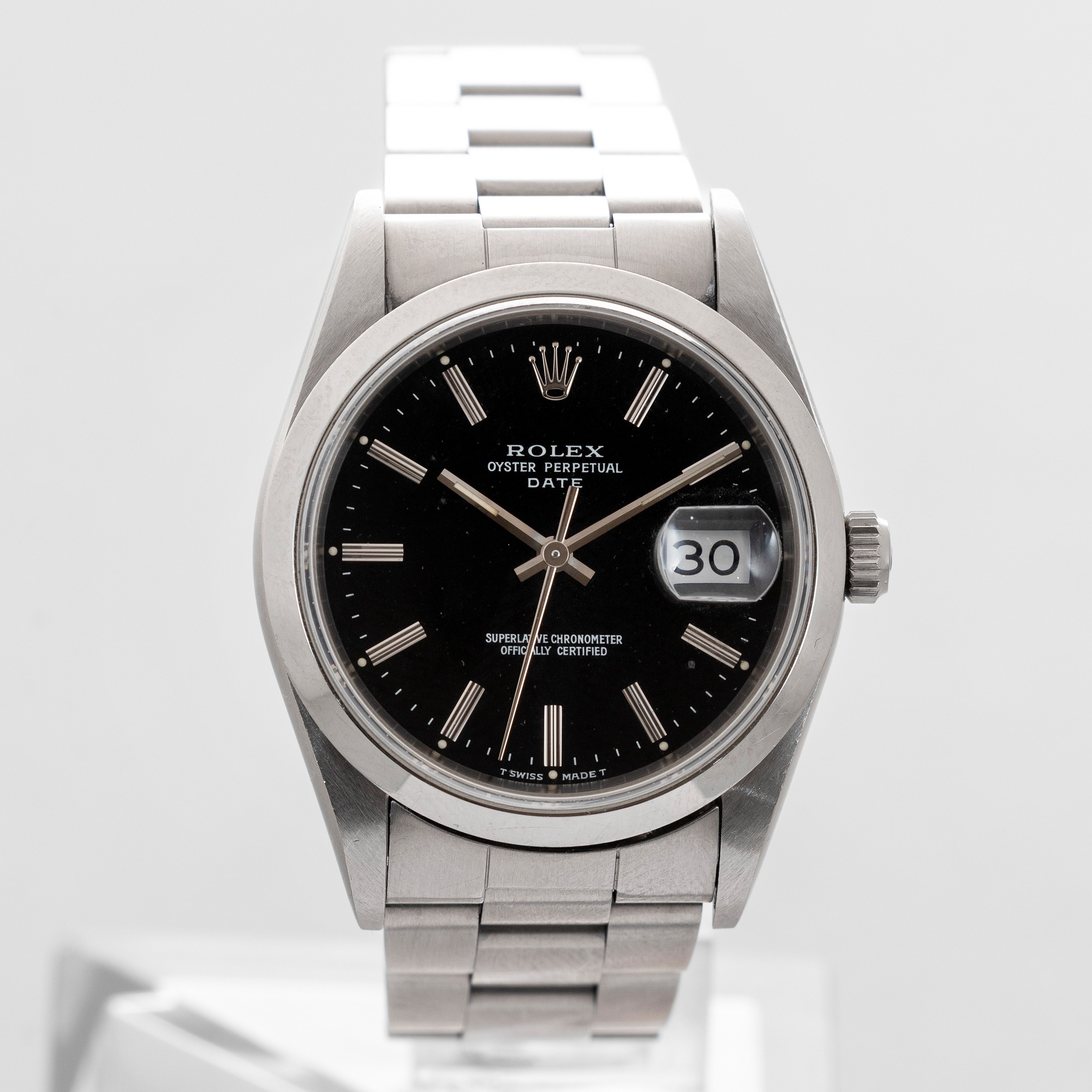 ROLEX - Date ref 15210 in acciaio, quadrante nero con indici a bastone, finestrella [..]