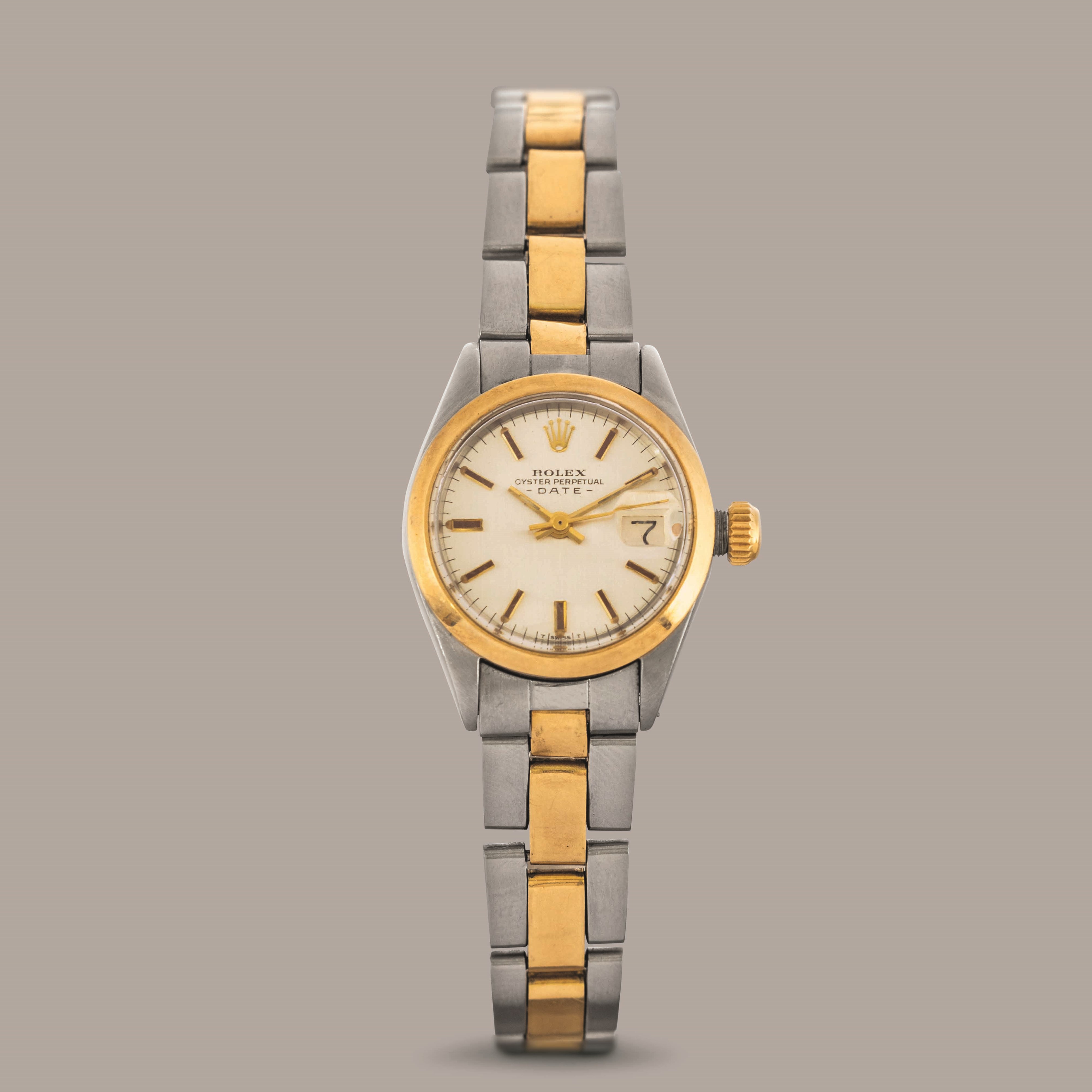 ROLEX - Oyster Perpetual Date ref 6916 acciaio e oro, quadrante Argentè con indici [..]