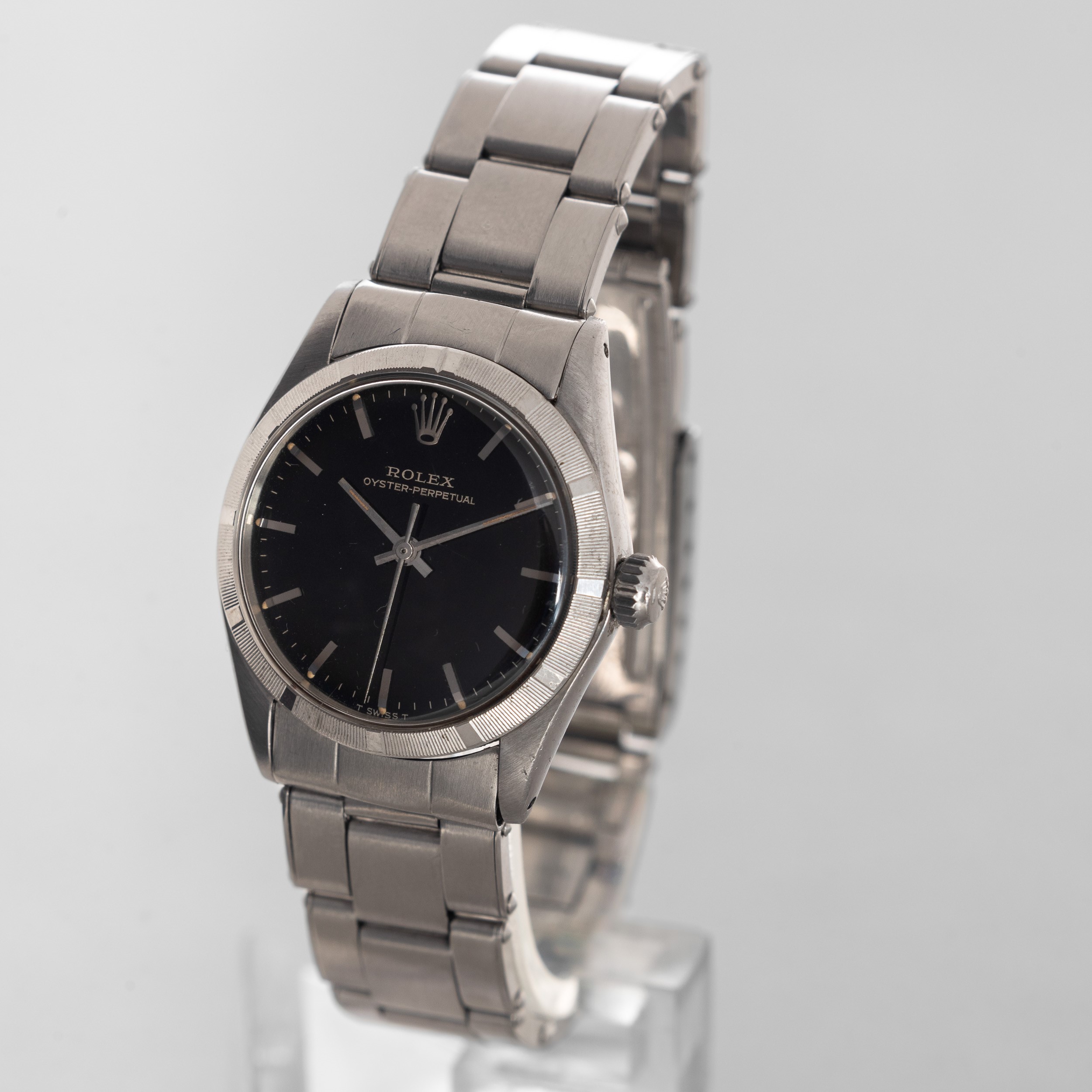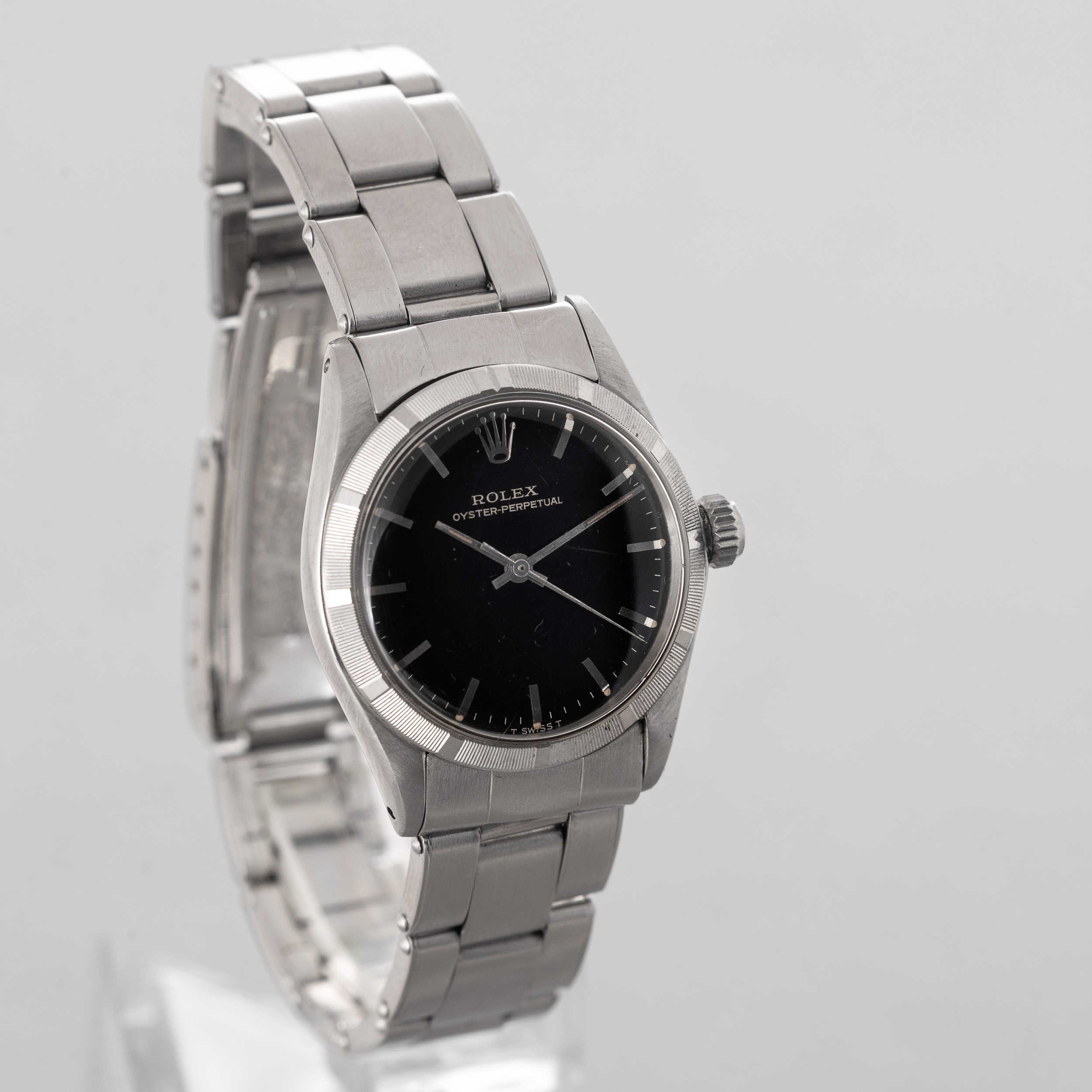 ROLEX - Oyster Perpetual ref 6549 in acciaio, quadrante nero Gilt con inidci a bastone, [..]