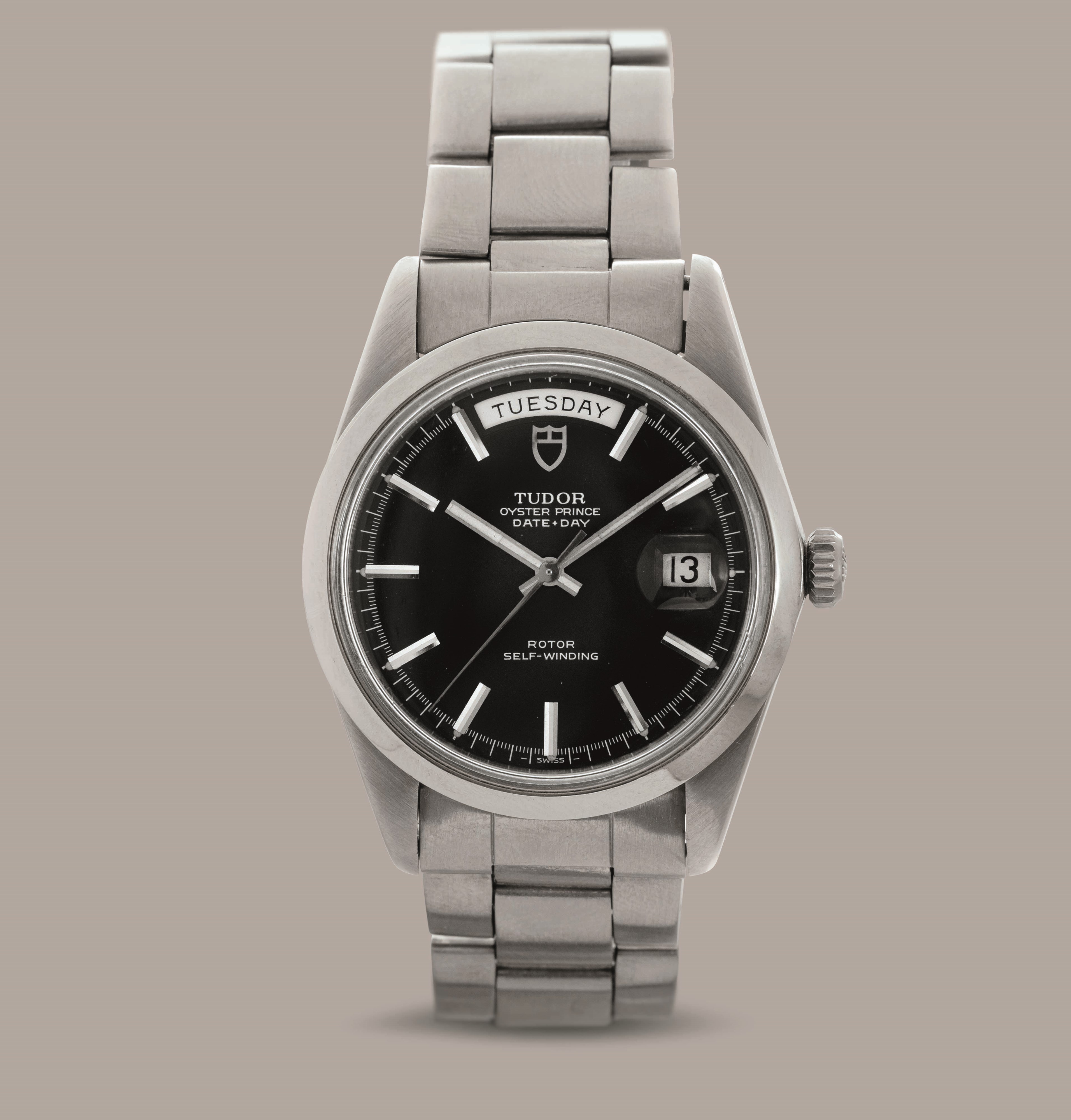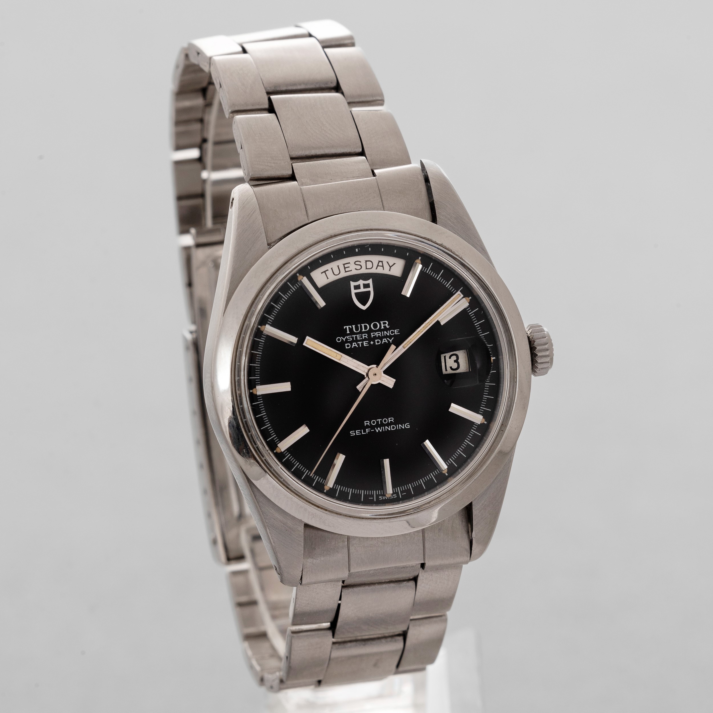 TUDOR - Oyster Prince Date-Day in acciaio ghiera liscia, quadrante nero con giorno [..]