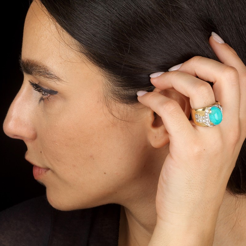 TURQUOISE AND DIAMOND BAND RING IN 18KT TWO TONE GOLD