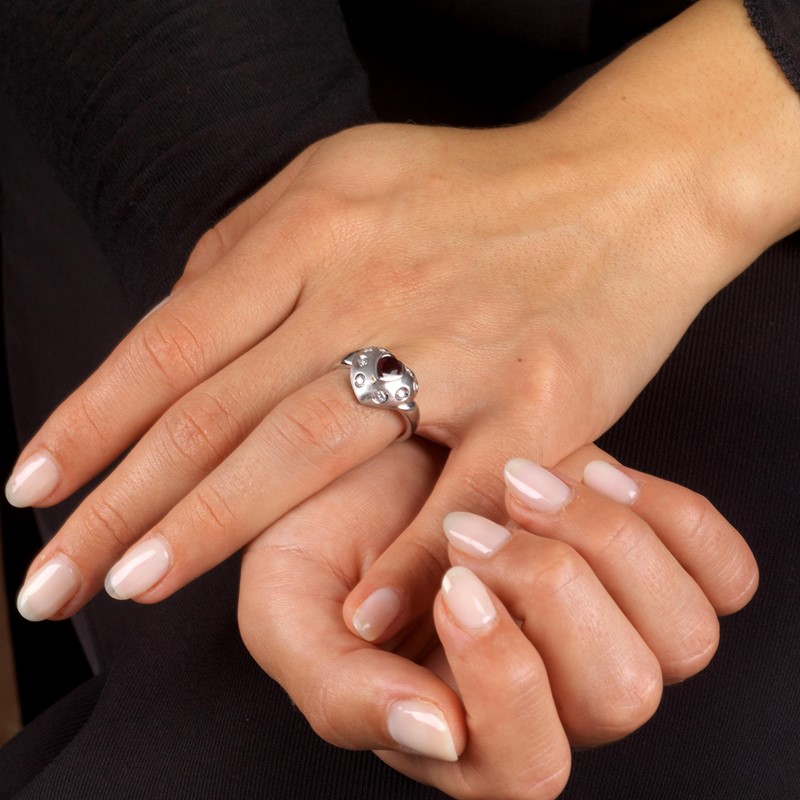 ANELLO A FORMA DI CUORE CON RUBINO E DIAMANTI