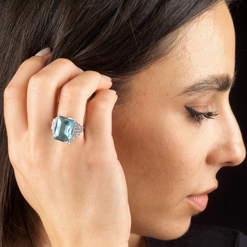 ANELLO CON ACQUAMARINA E DIAMANTI