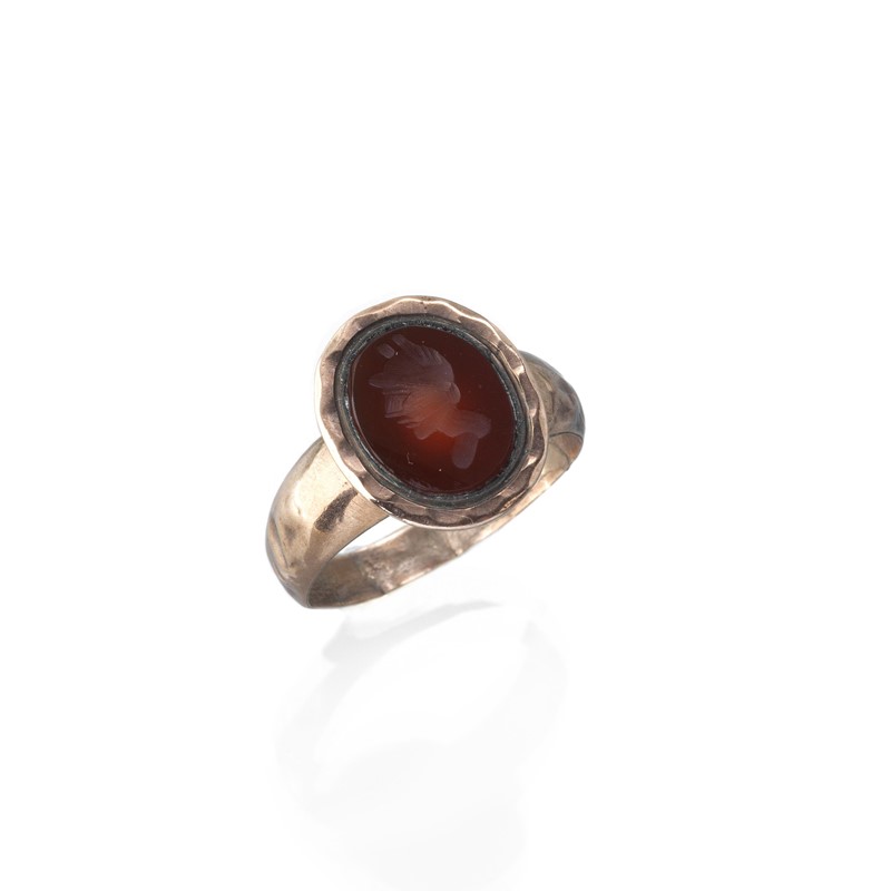 in metallo, recante una corniola raffigurante il profilo di un volto maschile inciso, mis. 60, gr. 2