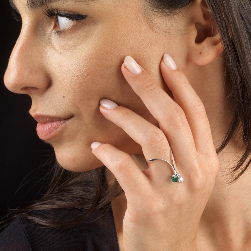 EMERALD AND DIAMOND RING IN 18KT WHITE GOLD