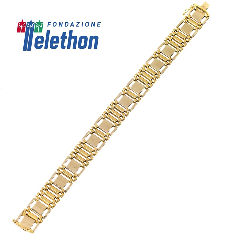 BRACCIALE A CATENA in oro giallo e bianco 18kt, composto da una serie di maglie concatenate, punzoni 750 e del fabbricante, lungh. cm 21,5, gr. 37