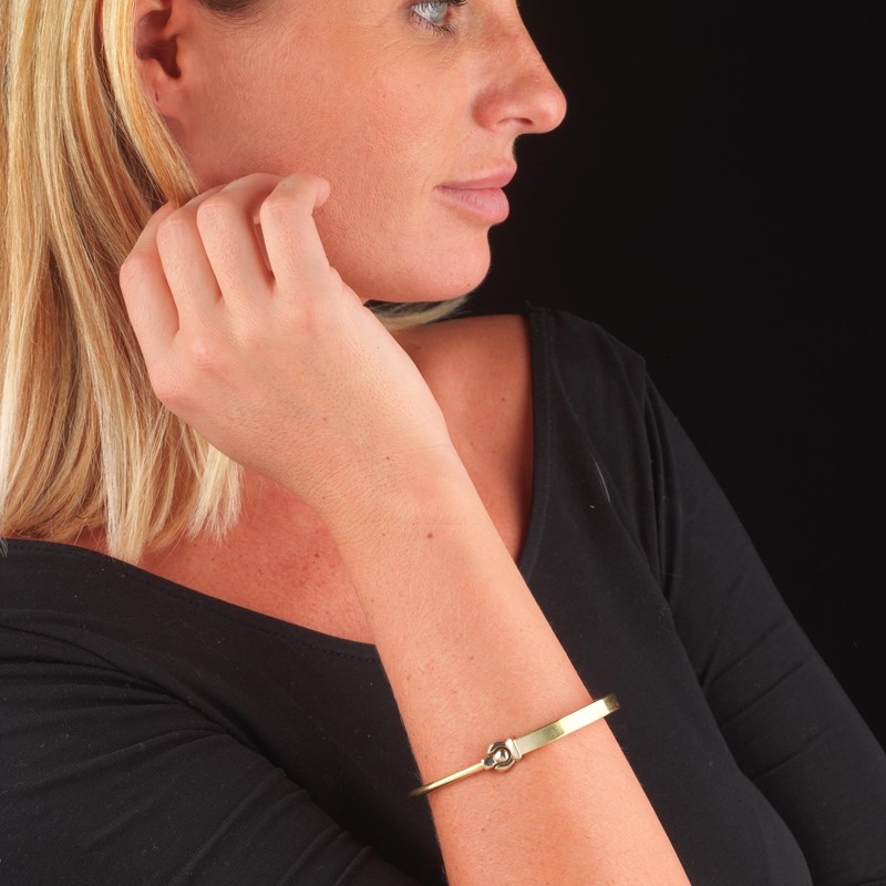 BRACCIALE RIGIDO in oro giallo e bianco 18kt, punzoni 750 e del fabbricante, dim. cm 7,5x5,5, gr. 19
