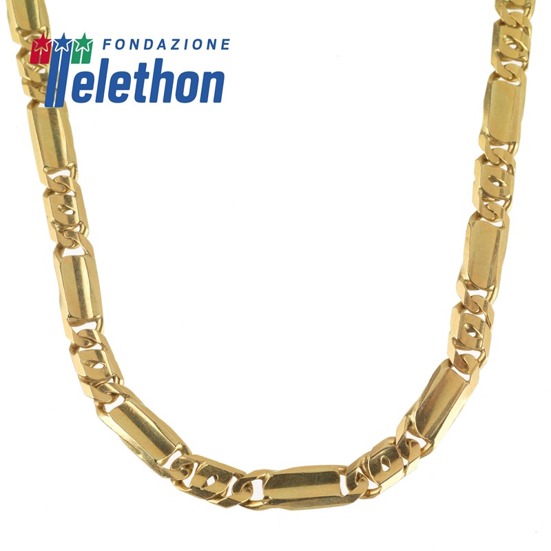 COLLANA A CATENA in oro giallo 18kt, catena composta da una serie di maglie concatenate, punzone 750, lungh. cm 61, chiusura a moschettone, gr. 101