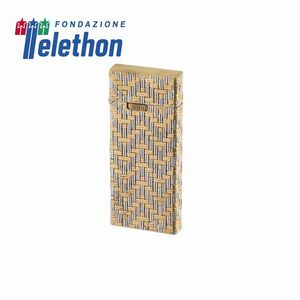 ACCENDINO rivestito in oro giallo e bianco, con superficie realizzata a maglia tessita, punzone 750, dim. cm [..]