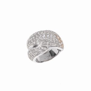 ANELLO A FASCIA BOMBATA CON DIAMANTI in oro bianco 18kt, impreziosito da pavé di diamanti taglio brillante [..]