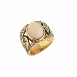 ANELLO A FASCIA CON CORALLO ROSA E DIAMANTI in oro giallo 18kt, impreziosito da un corallo taglio cabochon di [..]
