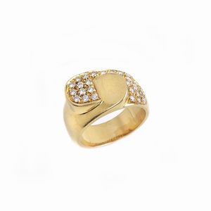 ANELLO A FASCIA CON DIAMANTI in oro giallo 18kt, impreziosito da pavé di diamanti taglio brillante per [..]