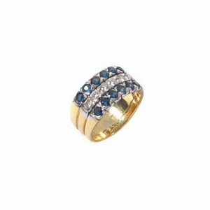 ANELLO A FASCIA CON ZAFFIRI E DIAMANTI in oro giallo e bianco 18kt, impreziosito da una serie di diamanti taglio [..]